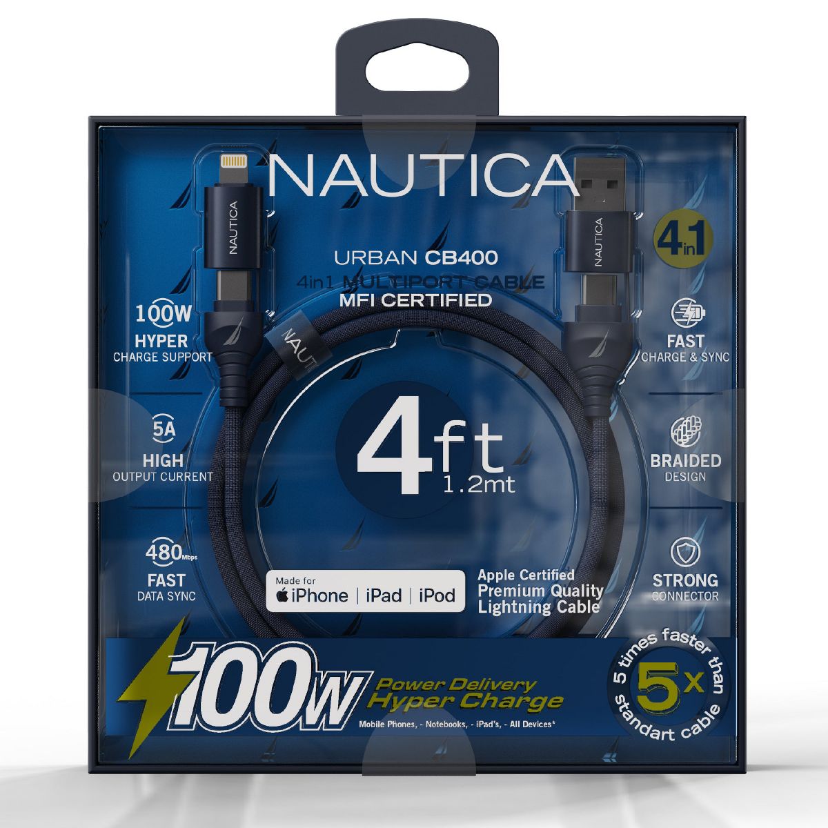 Nautica CB400: The Boldest MFi Certified 4-in-1 Cable