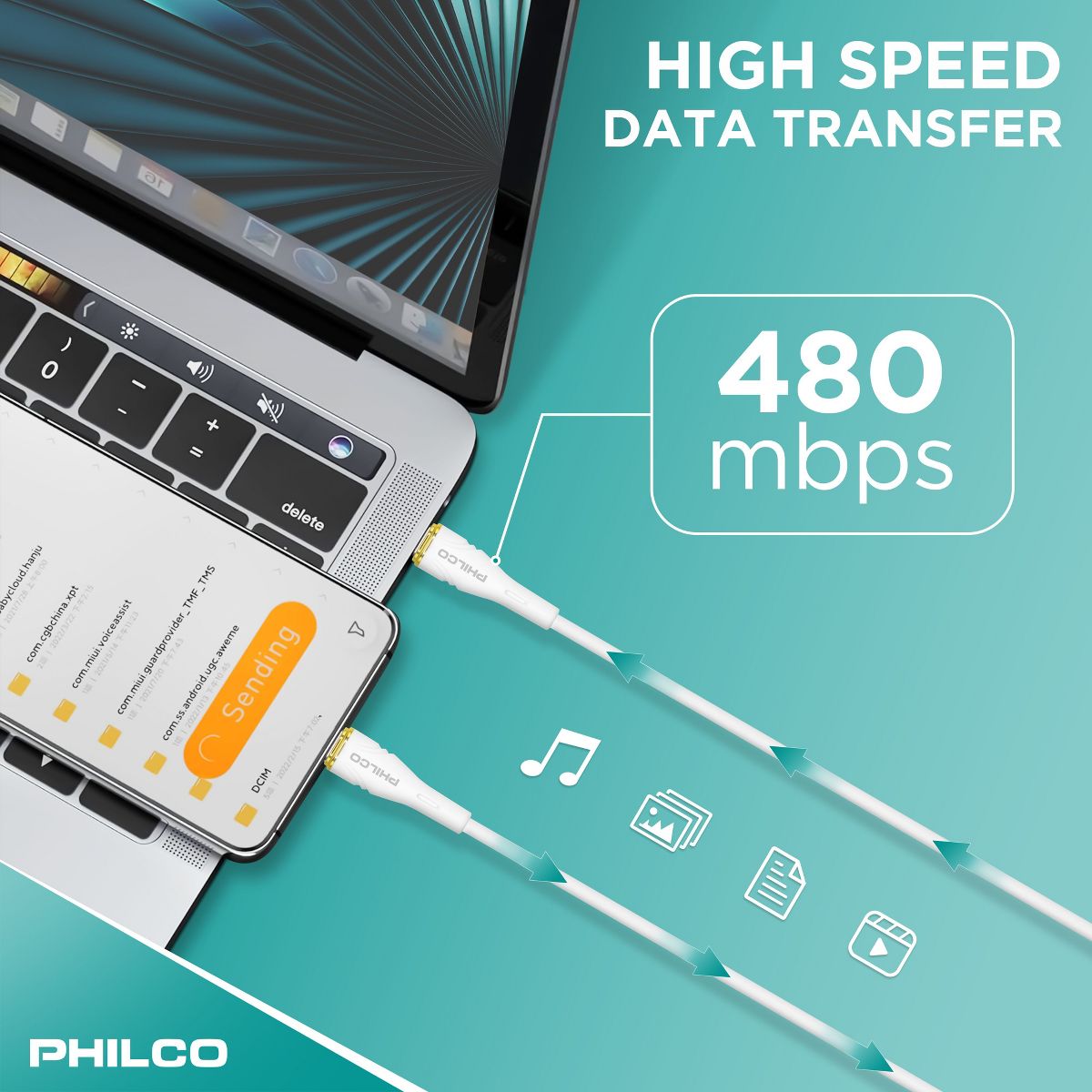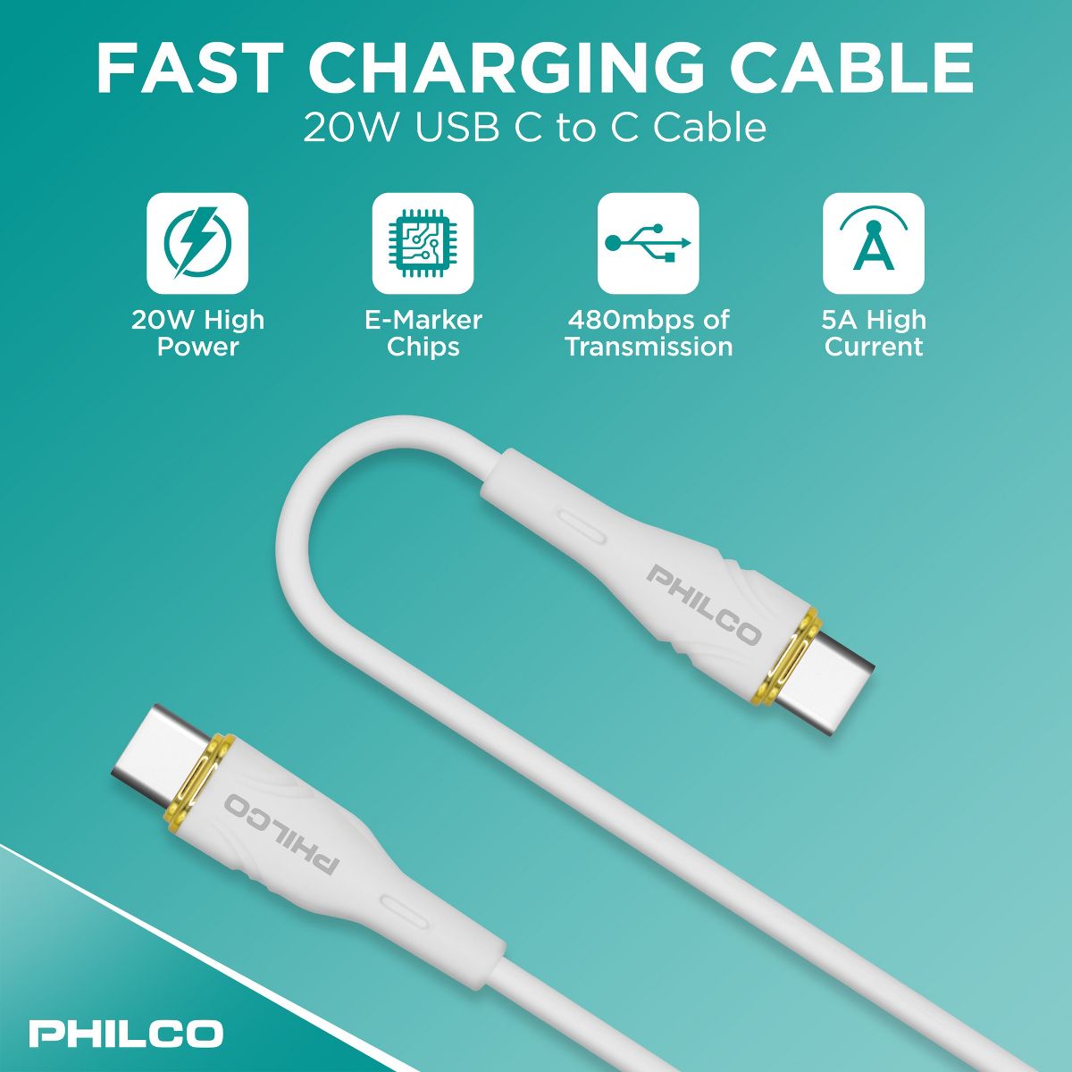 PHILCO USB C to C Cable, 4Ft Length, 20W Fast Charging, High-Speed Data Transfer, Durable and Tangle-Free Black