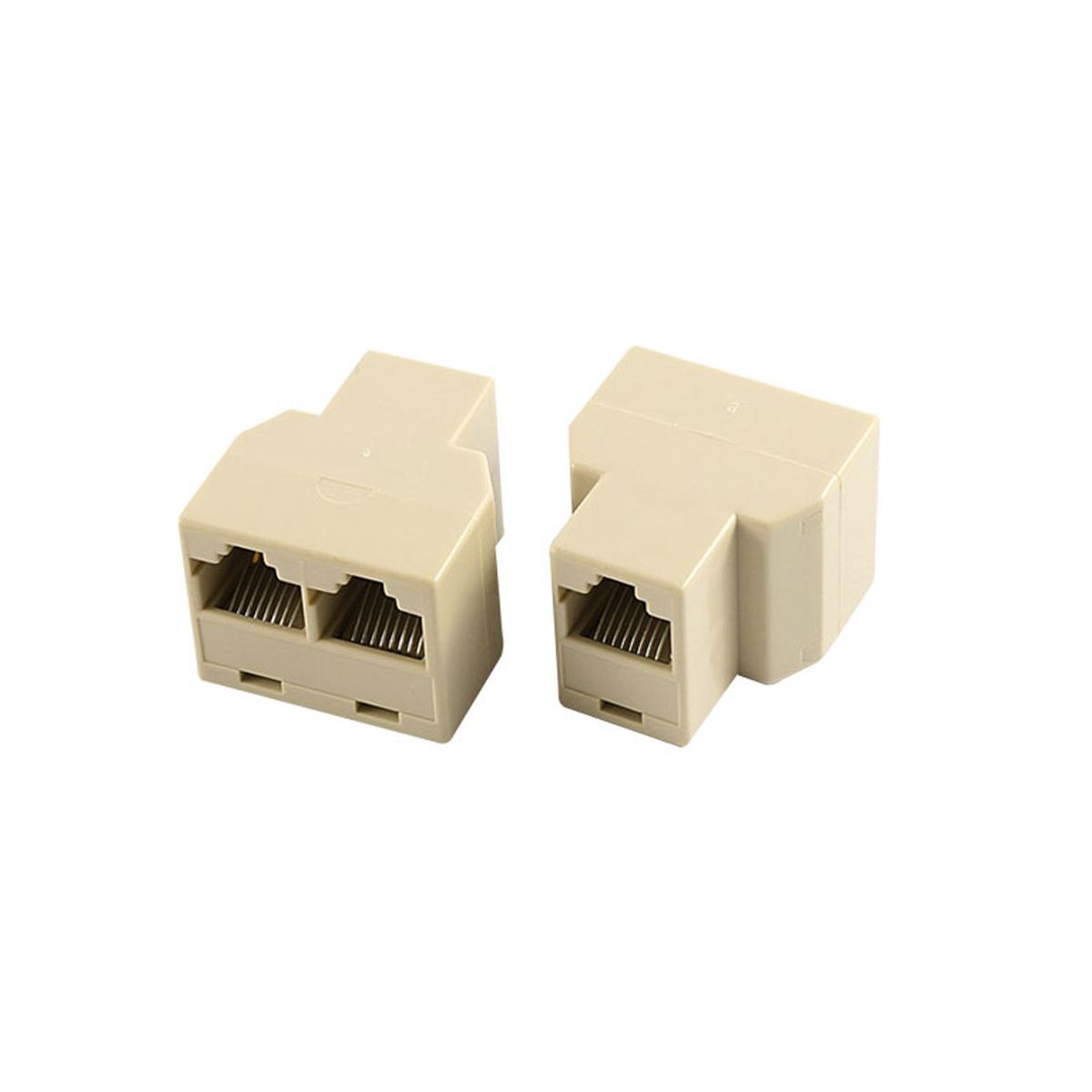 Plastic Shell RJ45 8P8C Phone Cable Female to 2 Female Telephone Extension Connector Line Adapter Convertors Jack Splitter 10pcs. RJ-45 Jack Splitter connects two devices to one phone Jack. Connect two phone devices to one outlet. Perfect for connecting a phone and fax machine to the same plug. Compact dimensions of 33 x 30 x 23mm.