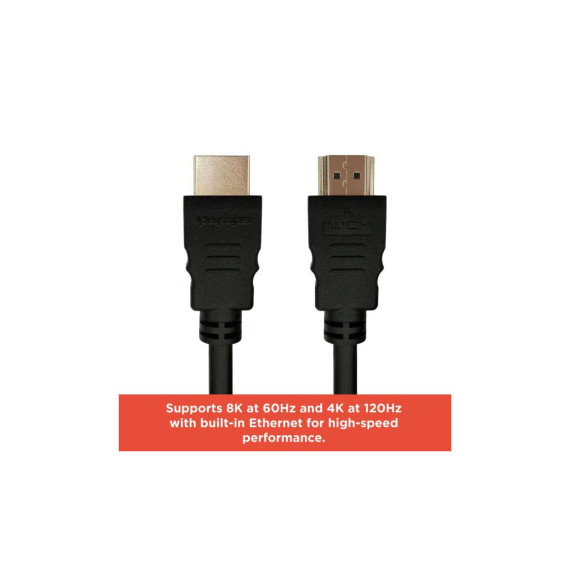 And with 3D signal support, step into a realm where entertainment transcends the screen, captivating your senses in ways you never thought possible. It’s like being in a movie theatre without the high price of tickets and popcorn. Furthermore, its Ethernet capability simplifies your digital ecosystem, providing a single cable solution for high-speed internet connectivity, streamlining your setup with efficiency and elegance. Designed with durability in mind, its round, black form enhances aesthetics, and the 6-foot length ensures tangle-free handling while providing enough room to reach your peripherals, making it a perfect fit for any environment. Whether you're playing the latest award-winning game, streaming the next Oscar nominee, or indulging in the internet’s funniest videos, this HDMI 2.1 Cable is your gateway to the future of multimedia connectivity. Elevate your digital experience and unlock the full visual and audio potential of your devices with this cutting-edge cable.