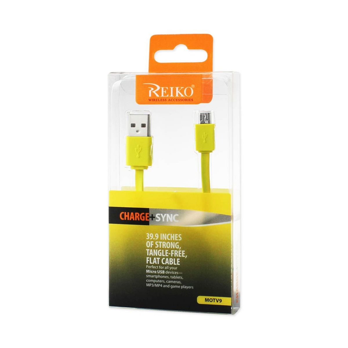 REIKO TANGLE FREE MICRO USB DATA CABLE 3.3FT IN - YELLOW
