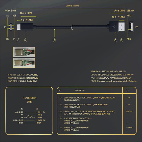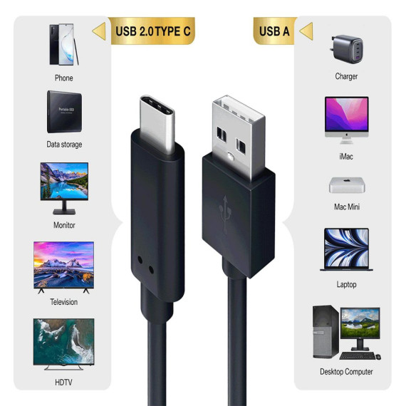 SANOXY Cables and Adapters; 6ft USB 2.0 A Male to C Male Cable 480M 3A, Black