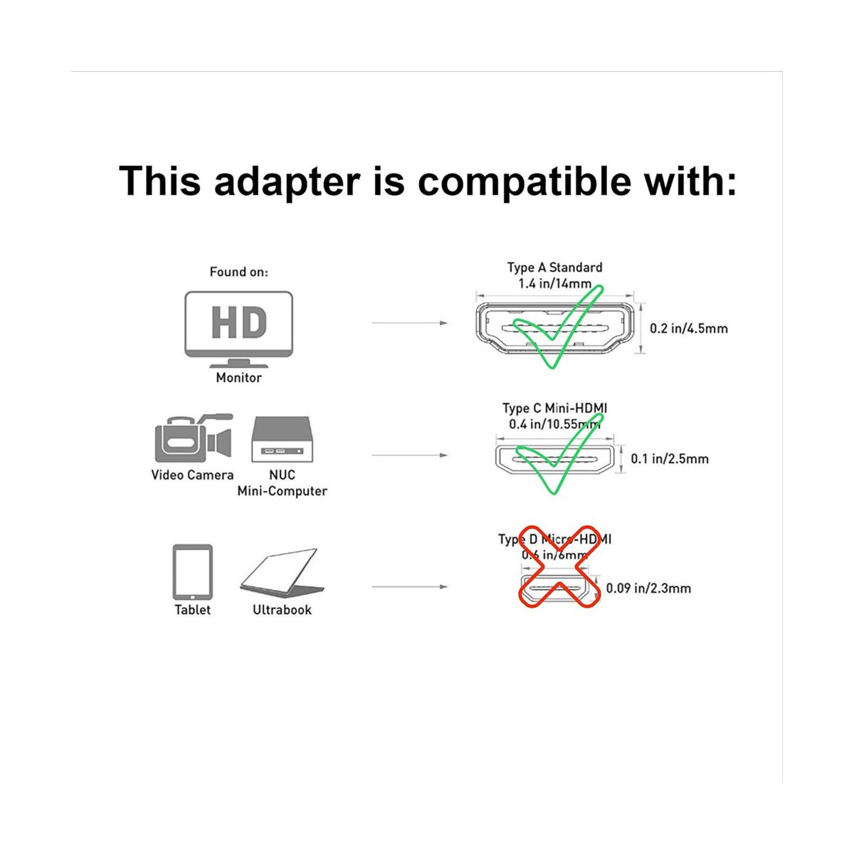 SatelliteSale Digital HDMI Female( type A ) to Mini HDMI Male ( type C ) adapter is a perfect cost-effective adaptor that will serve its owner for years. Enjoy playing games and watching videos, listening to music from your tablet, laptop, desktop, and digital cameras-DSLR on projectors, monitors, screens, and TVs. Our plug-and-play HDMI adaptor doesn't require additional software or settings and can be easily installed. Moreover, its functionality allows you to watch your favorite shows and share them with your family and friends at high resolution with a crystal clear sound. SatelliteSale Digital HDMI Female to Mini HDMI Male adapter provides you with a beautiful image that and can be easily plugged into your audio/video devices such as Blu-ray Players, Cable Boxes, Desktop and Laptop Computers, Monitors, Projectors, Soundbars, TVs, and more. It is also a backward-compatible tool that can be connected to the previous versions of HDMI. Every converter we sell is a perfect match for both commercial and residential use and is covered with a lifetime warranty to deliver a positive experience to our clients.