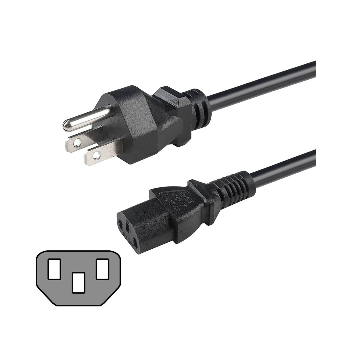 SatelliteSale Universal Heavy Duty Computer Power Cable Male NEMA 5-15P to Female IEC C5 Universal Wire Black PVC Cord 6 feet