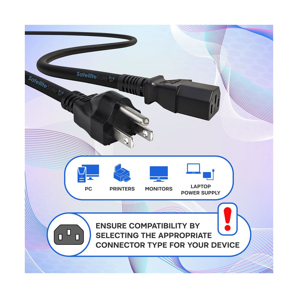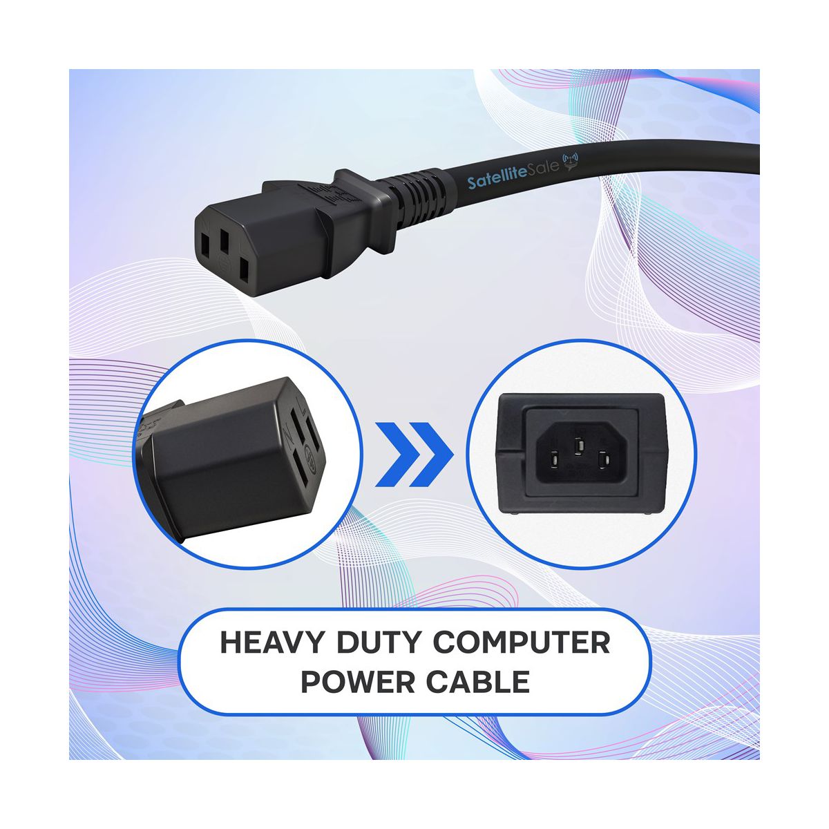 SatelliteSale Universal Heavy Duty Computer Power Cable Male NEMA 5-15P to Female IEC C5 Universal Wire ensures a great and reliable power transmission to your gadgets. It is an essential cord to buy when it comes to plugging-in laptop computers with a three-slot power supply adapter. Our e Universal Heavy Duty Computer Power Cable is an easy-to-use, plug-'n'-play accessory. It provides an uninterrupted electric connection to the connected devices. A PVC jacket combines a simple, minimalistic design and safety of the cord, preventing bending damage. C5 connectors fit in the device's inlet perfectly, and won't get loose or fall out. Comes in different lengths of 6 feet and 15 feet. SatelliteSale Universal Heavy Duty Computer Power Cable Male NEMA 5-15P to Female C5 is perfect for users who regularly plug and unplug cables. Our cord provides excellent compatibility with a wide range of devices and works well as a spare cord. Plug-in your modern computers, laptops, most power bricks for laptops/notebooks, monitors, scanners, printers, and other devices with a C5 power inlet. Every cable we sell is a perfect match for both commercial and residential use: you can replace your existing overused, old, broken, damaged, or misplaced power cable and even add some extra length between devices for your convenience. Rated for use with North American power outlets (USA, Canada). Please, check the product pictures to make sure this cable is compatible with your devices. In addition, we assure the lifetime service of each cord to deliver a positive experience to our clients.