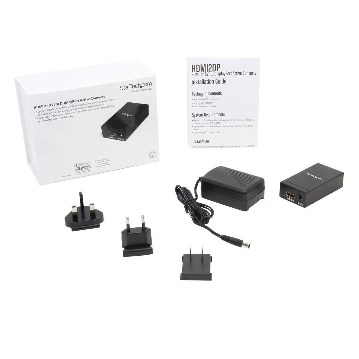 The HDMI2DP DVI or HDMI to DisplayPort Converter allows you to easily connect your HDMI, DVI, or Mini DVI output devices to a DisplayPort display. This eliminates the need for costly upgrades to your source device or the purchase of a new display. Supporting full HD resolutions up to 1920x1200, this converter is ideal for video cards, gaming consoles, or home theater receivers. StarTech.com backs this product with a 2-year warranty and provides free lifetime technical support.