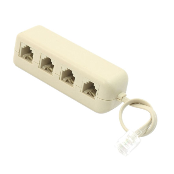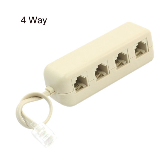 The male end of this connector is an RJ11 6P4C Male that can be connected to a phone line or other compatible device. The female head is a four 6P4C Female socket that can be used to connect multiple RJ11 plug devices such as phones and modems. RJ11 is the standard telephone line interface with a 6-position, 4-metal contact point configuration. With this RJ11 telephone line connector, you can expand one RJ11 plug to four RJ11 plugs. The 4-way telephone line splitter is simple to plug and unplug and requires no additional tools. It is made of good-quality plastic material that provides stable signal transmission for a long service life. Suitable for all standard RJ11 devices such as landlines, fax machines, and office lines, it is ideal for home and office use. The splitter allows you to connect one device to multiple phones simultaneously with high interference immunity and HD sound quality.