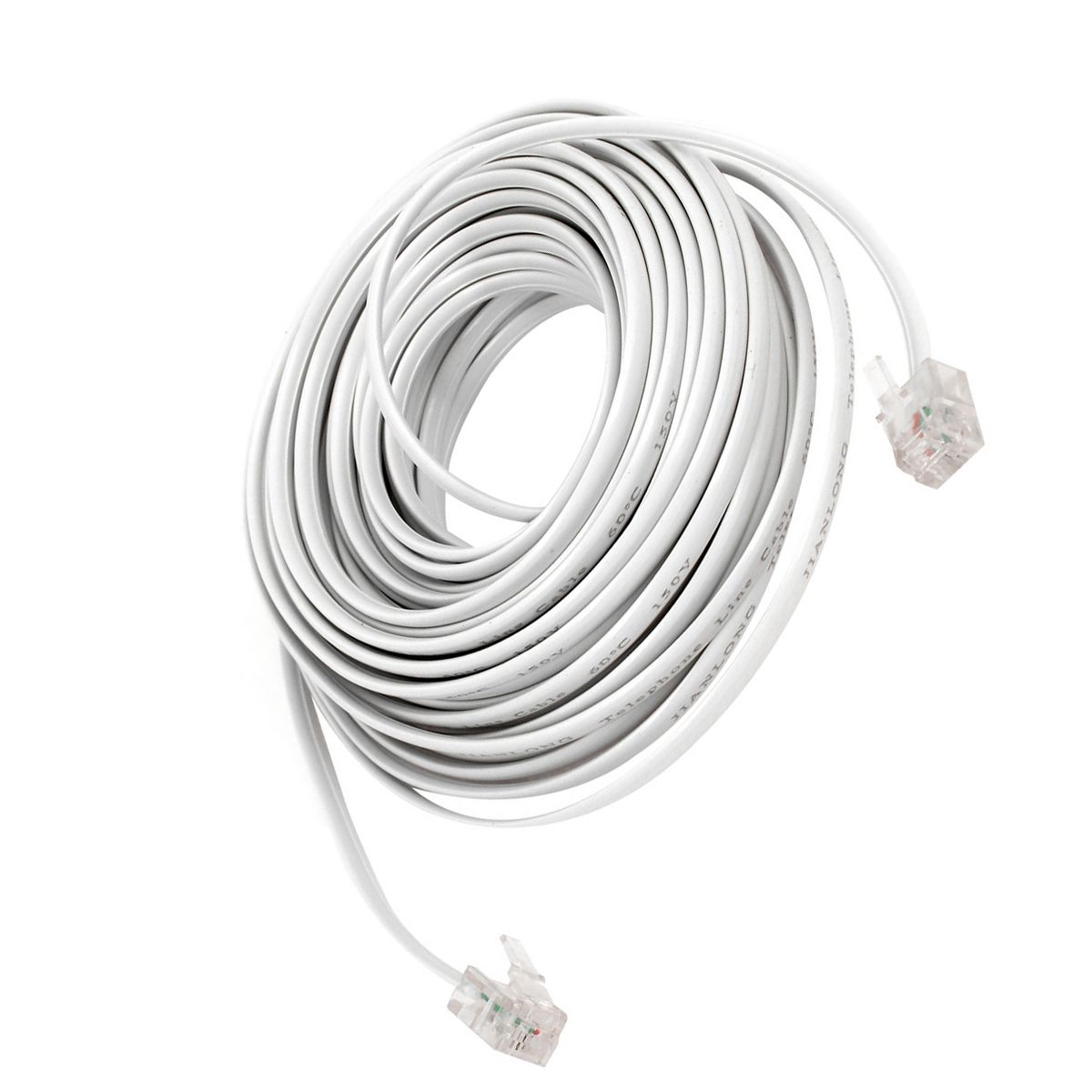 This telephone extension cord is designed for versatile use with telephones, fax machines, modems, and answering machines. It features a 33-foot length, providing ample reach for most office or home settings. Made from materials, it is durable and reliable, resistant to damage or breakage. The cord is equipped with a 6P2C RJ11 plug, suitable for standard telephone equipment. The copper wire ensures high conductivity and low impedance, with plug contacts coated in thicker gold plating for excellent connection and call quality. Insulation and sheath are crafted from quality PVC material, offering a smooth, defect-free surface and good insulation properties. Ideal for phone line replacements and modular office and home phones that require extension cords to cover large indoor areas.