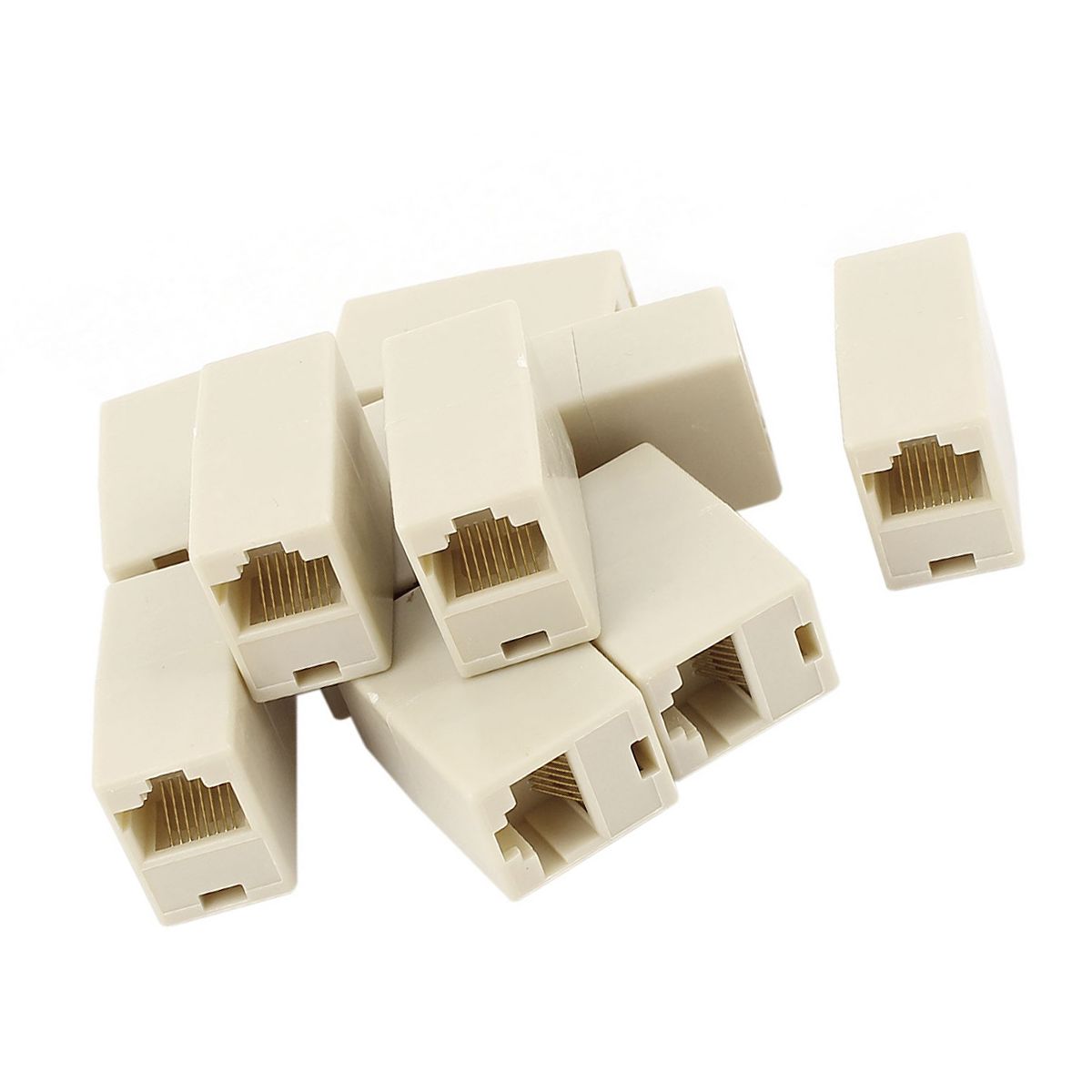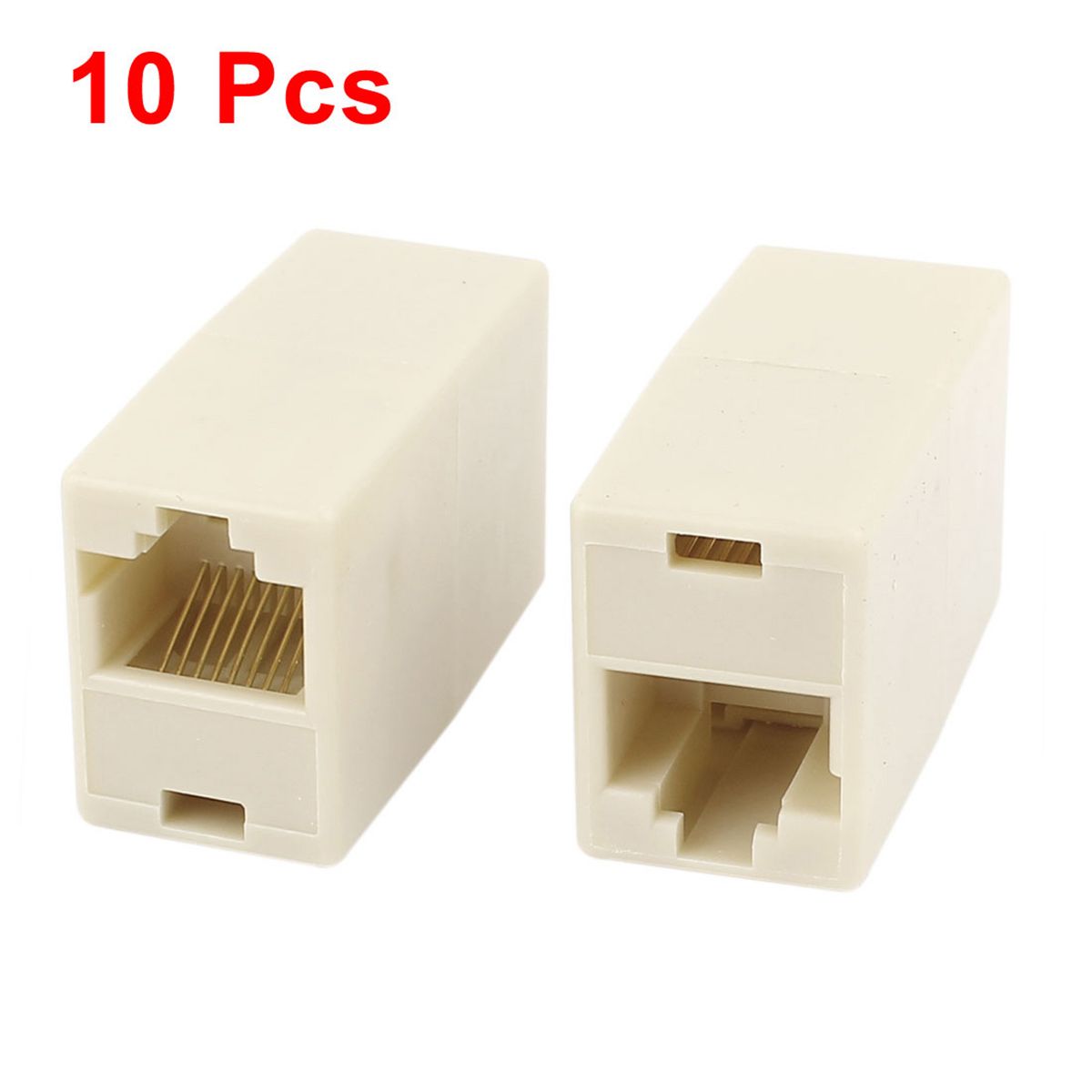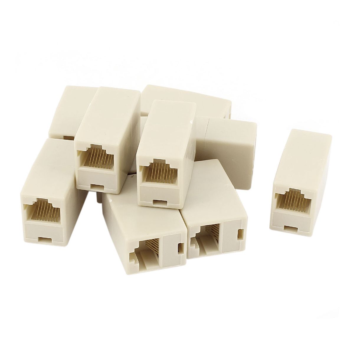 Unique Bargains Plastic Metal Gold Plated Contacts Straight-Through Configuration RJ45 Coupler Beige 10 Pcs