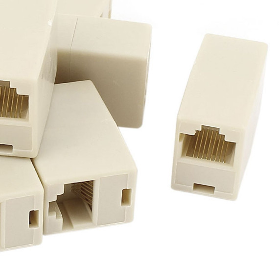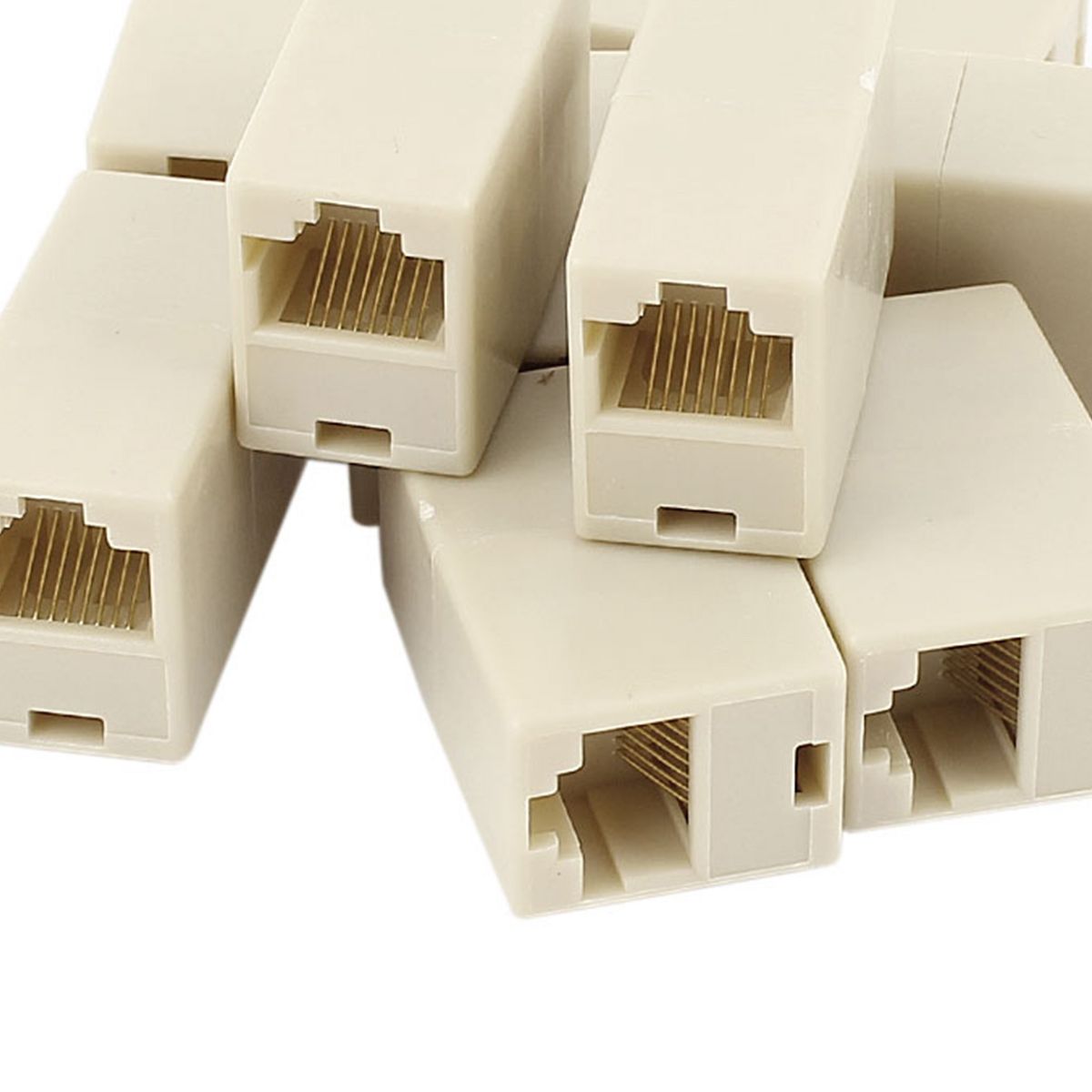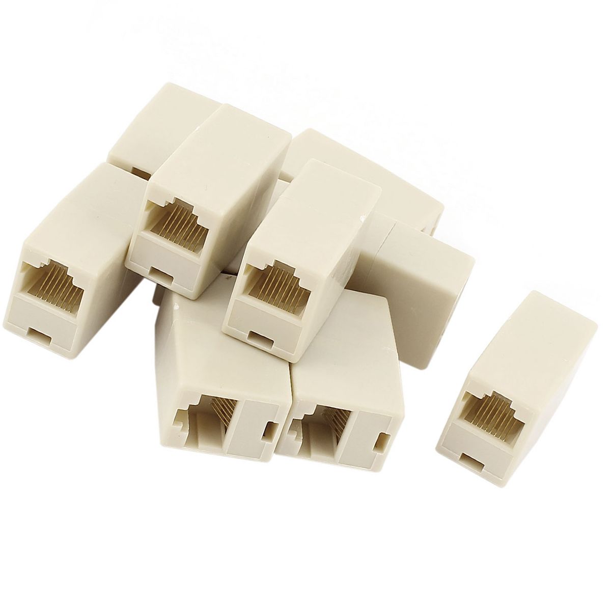 Unique Bargains Plastic Metal Gold Plated Contacts Straight-Through Configuration RJ45 Coupler Beige 10 Pcs