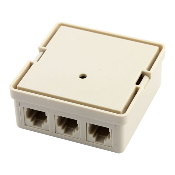 Connect three modem or telephone devices to one phone Jack. Install it on the wall or other flat places with the included double adhesive tape. The RJ11 6P4C connector works with all common RJ11 devices, such as landlines, fax machines, or answering machines. It installs easily with a screwdriver, avoiding static or sound distortion. This product features a three-port surface mount phone jack with four internal screw terminals for terminating wires. Made from plastic and wire components, the adapter is universally suitable for all common RJ11 devices. The package includes one telephone modular joiner and one double adhesive tape.