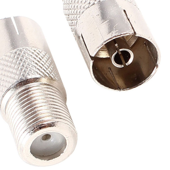 This adapter is designed to convert F-type female connectors to TV PAL female connectors, facilitating easy connections between different devices. Made of quality metal, it offers durability and stability for reliable signal transmission. It fits common F-type and TV PAL interfaces and is suitable for a wide range of TVs, antennas, tuners, and coaxial cables. The adapter is small, lightweight, and portable, making it convenient for on-the-go connections. Its quick-connect design ensures easy and fast installation by simply inserting or removing it.