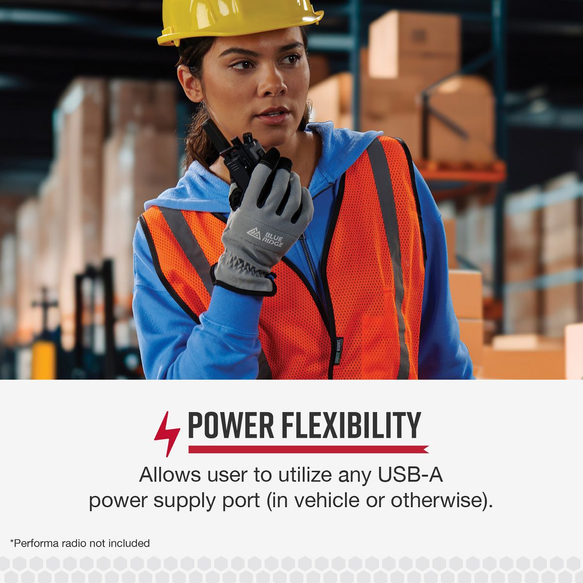 Is your company using Cobra® Performa 2-way handheld business radios? Use this USB-C® to USB-A charging cable to charge your Performa radio using any USB-A compatible power supply. This comes in very handy if you are out in the field and can’t get back to one of the Cobra® dock chargers. The charging cable also comes with a wall power adapter. This allows you to plug the USB-A end of the cable into 1 side and then plug the 2 prongs of the wall adapter into any standard 110/120-volt wall outlet.