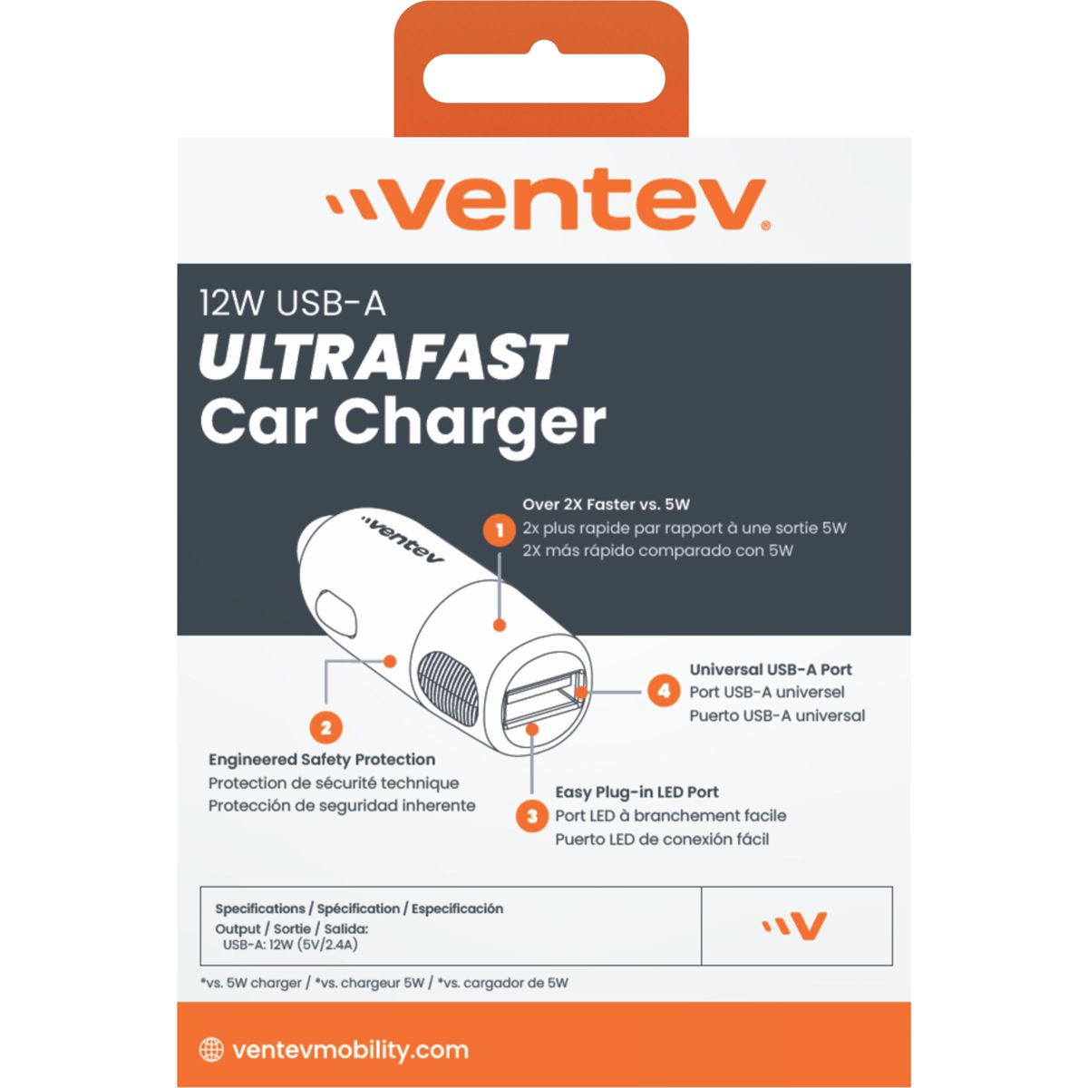 Ventev 12W Usb-A Universal Car Charger Gray