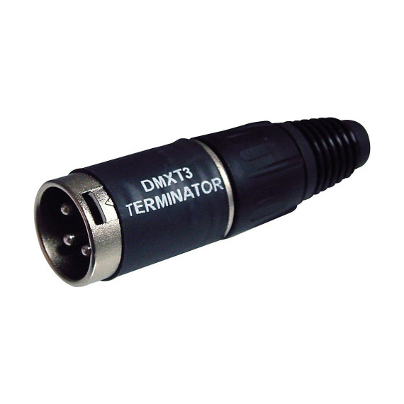 The GCDMXT3 DMX terminator is used as the last component in a chain of DMX lighting fixtures. It tells the master controller that there are no additional DMX fixtures in the chain.