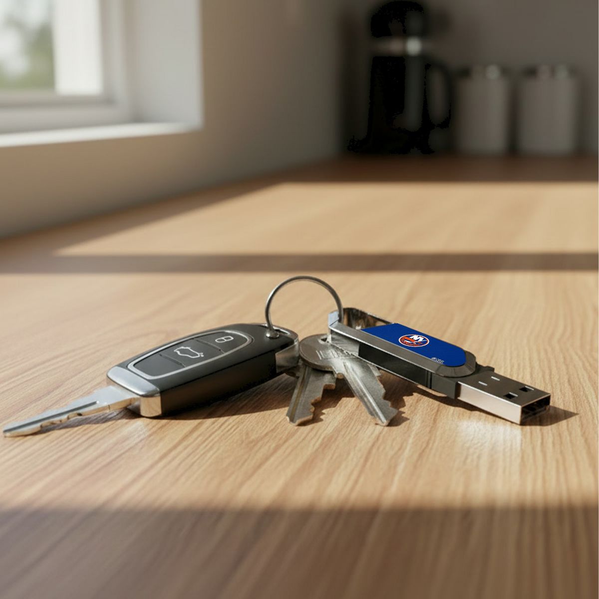 Take more than files with you when you use this officially licensed USB drive with a convenient carabiner clip. At 64GB this drive has substantial capacity and style to suit your daily digital transport needs. Show off your files and your fan pride. Designed and decorated by Keyscaper in Tualatin, Oregon, USA.