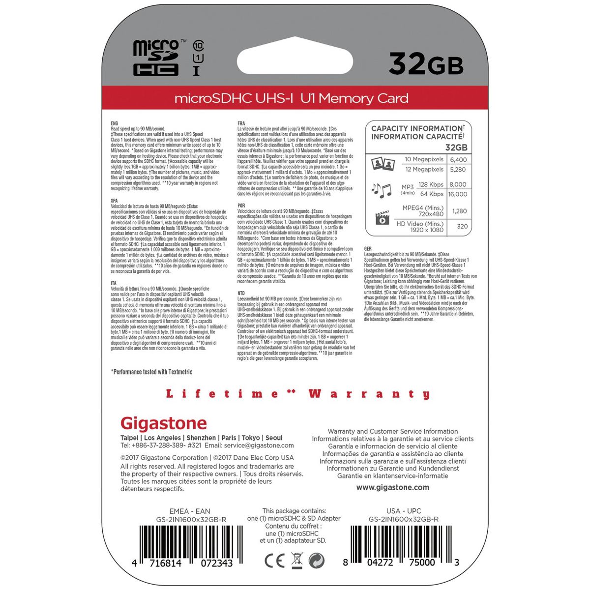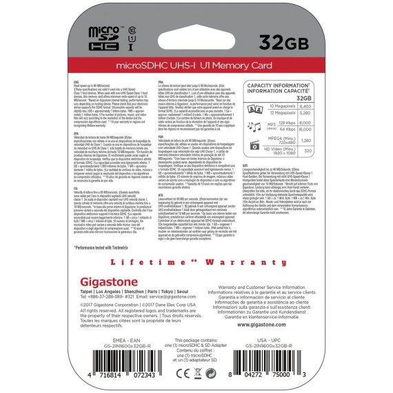 Capture the exciting moments of your life with the 32 GB Gigastone UHS-1 Class 10 microSD Card. The high-performance memory card has high data transfer speed up to 90 MB per second and is designed to help you get the best results when shooting Full HD video and high-resolution photos. This kit is compatible with all major smartphones, including most Android and Windows phones with a MicroSD Card slot. It also works great with tablets, cameras, drones PCs, notebooks, Macs and MacBooks with SD Card slot. The SD adapter makes it easy to move files between mobile devices and computers for viewing, editing and backup. The card is available in multiple colors, however, no color choice is available.