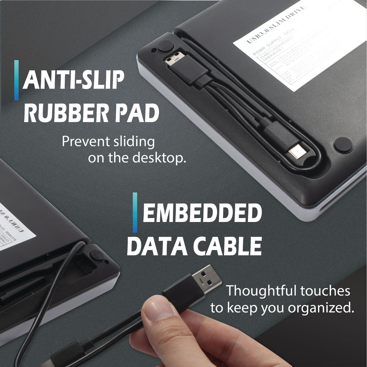 Insten External CD DVD Drive for Laptop, USB 3.0 Type-C Portable CD DVD Player Burner Reader Rewrite Optical Disk, Silver