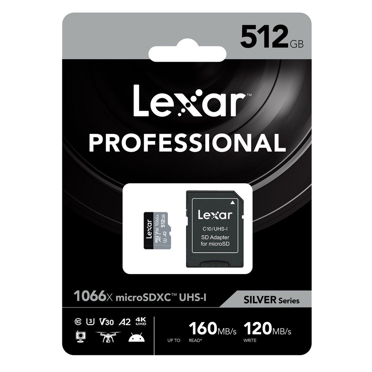 Lexar® Professional SILVER PLUS Series microSDXC™ UHS-I Card with SD™ Adapter (512 GB) in Black
