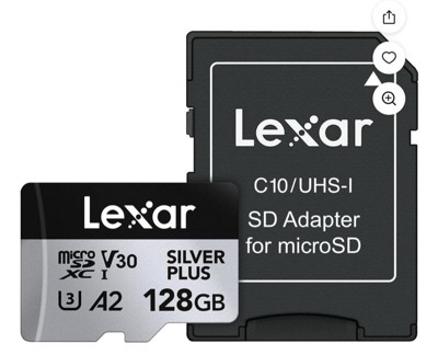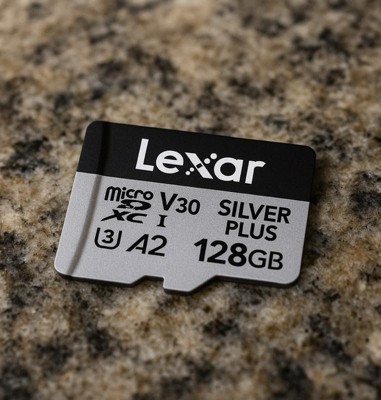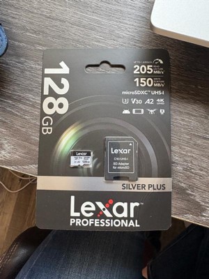 The Lexar® Professional SILVER PLUS microSDXC™ UHS-I Card delivers up to 205 MB/s max read and 150 MB/s max write speeds to help you capture better photos and videos and to accelerate your workflow. Rated V30, it records 4K video at 60 FPS for stunning, stutter-free footage. It’s water-, temperature-, x-ray-, vibration-, magnetic-, shock-, wear-, and drop-proof, and it comes with a lifetime limited warranty for maximum peace of mind.