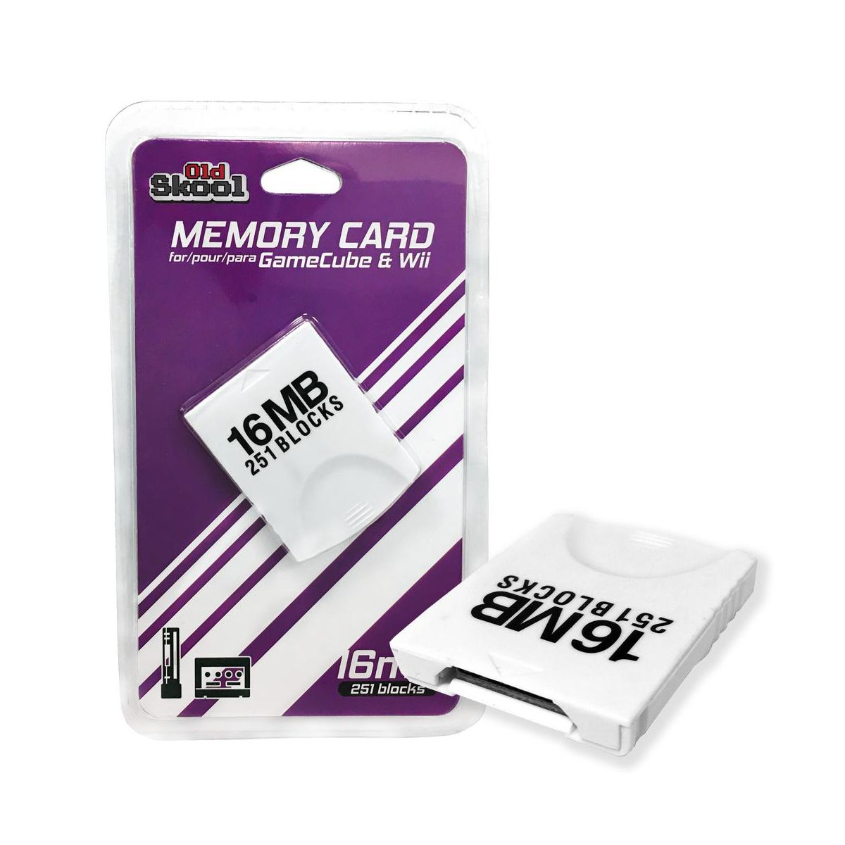 Take your games further with the Old Skool GameCube 16 MB Memory Card. Equipped with 251 blocks of memory, the Old Skool GameCube 16 MB Memory Card can save or reload your GameCube game data on the Nintendo GameCube or Wii. (1st generation Wii's with compatible Game Cube memory card slots)