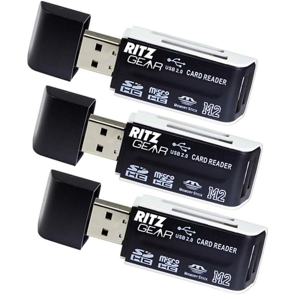 Transfer, read, and write with ease using the Ritz Gear 4-in-1 USB 2.0 Card Reader. Compatible with SDHC, microSDHC, Memory Stick, Memory Stick PRO, and Memory Stick Micro (M2) cards, this compact reader gives you flexible options for managing your files. Simply plug it into your computer via the USB 2.0 Type-A connection—no external power supply required.