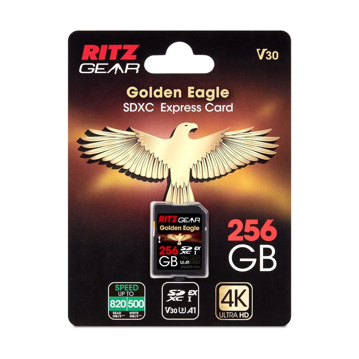 Save, store, and transfer your data with speed and confidence using the Ritz Gear Golden Eagle 256GB SDXC™ Express Card. Designed for professional creators, this next-generation memory card delivers blazing-fast read speeds up to 820 MB/s and write speeds up to 500 MB/s—up to 3X faster than UHS-II SD cards. Perfect for capturing Full HD, 4K, 8K, 3D, and burst RAW images, it ensures smooth performance without dropped frames, corrupted files, or slow buffering.