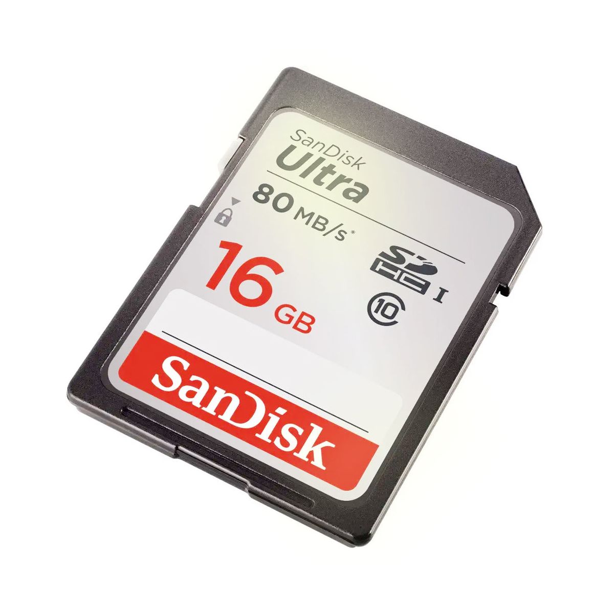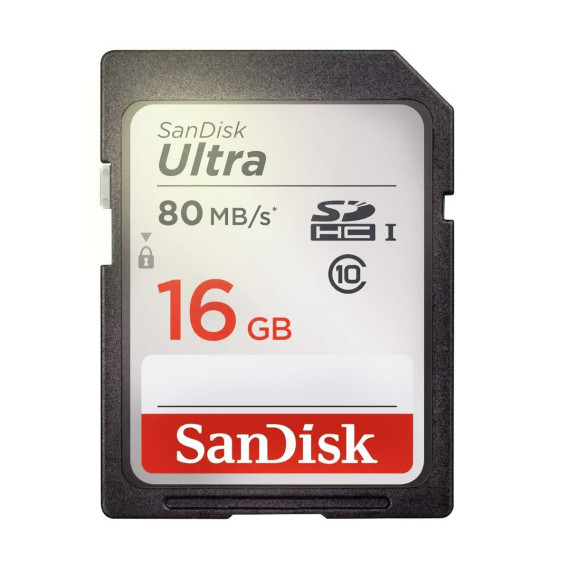Record Full HD 1080p video with this Class 10 compliant 16GB Ultra UHS-I SDHC Memory Card from SanDisk. With enhanced data read speeds of up to 80 MB/s this Ultra SDHC memory card is designed to suit the needs of compact and mid-range point and shoot cameras. You can also save and store a variety of files such as music, movies, documents and more. The writable label found on the card allows you to write down what is saved to the card while the built-in write protect switch helps to prevent accidental data loss. This card, as with most SanDisk cards, comes shock, temperature, x-ray, magnet, and waterproof to take your files with you nearly anywhere you go.