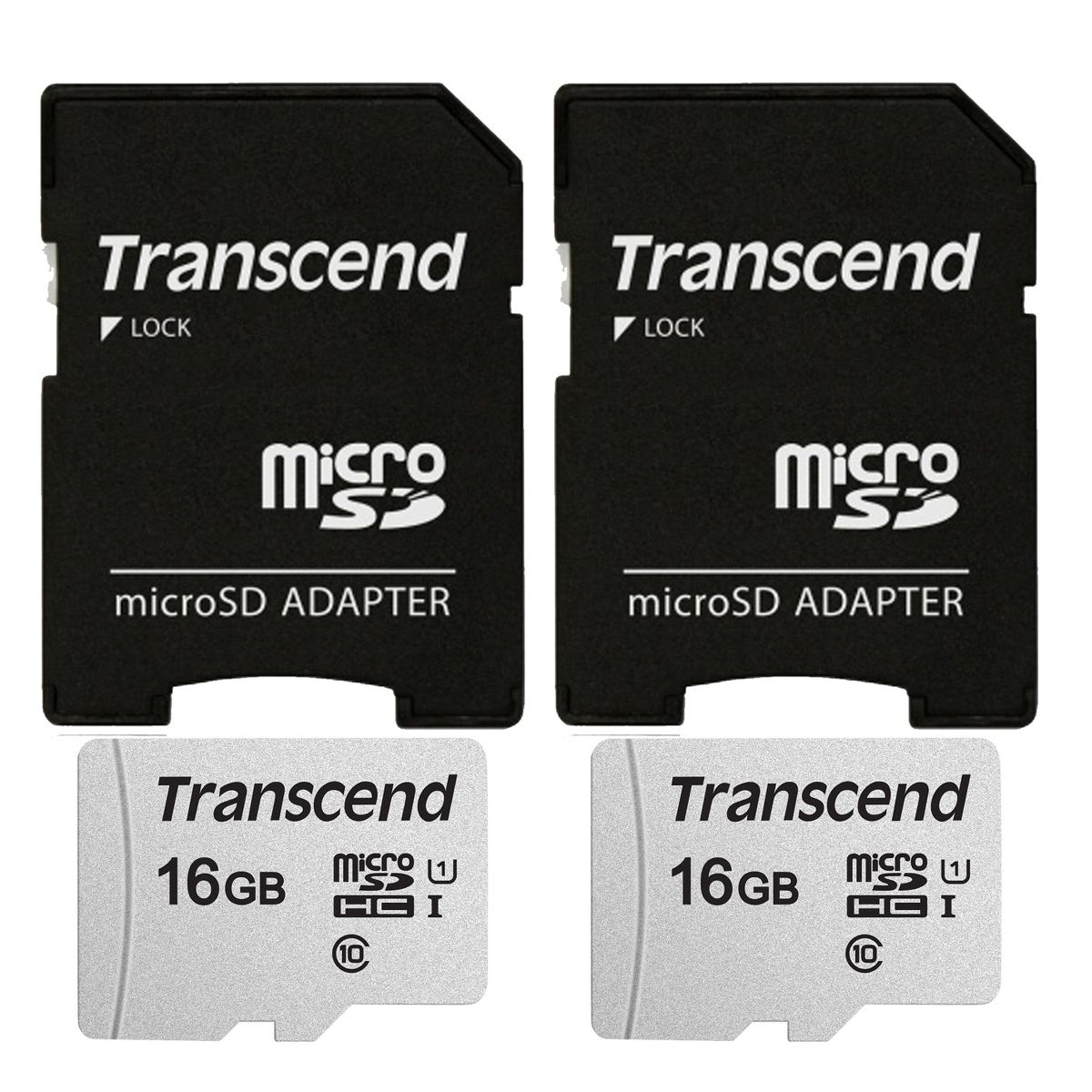 Two Transcend 16GB MicroSD 300s 95MB/s Class 10 Micro SDHC Memory Card with SD Adapter