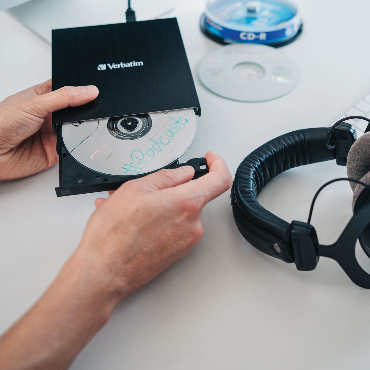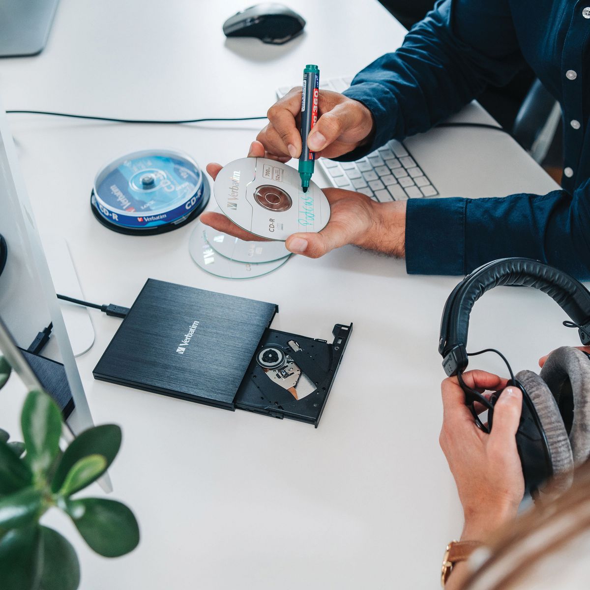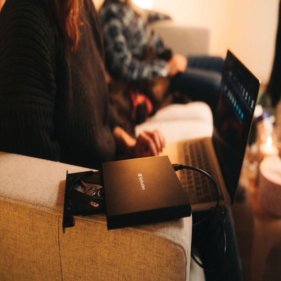 Verbatim® External Slimline CD/DVD Writer, USB-A/USB-C® in Black