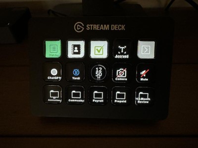 I know that the Stream Deck was made for streamers, but for accounting and general productivity, it is a game changer. The ability to open files that are 8 clicks deep in another file, the ability to add repetitive formulas in Excel, open my most use master files, having the most use general ledger code mapped to a key, creating files for my most used action while doing payroll, prepaids, accruals, and financial reviews, and so much more is amazing. The most amazing thing is programing a 10-step Excel action to a single button, saving me precious time when I have to do this 200 times a week.