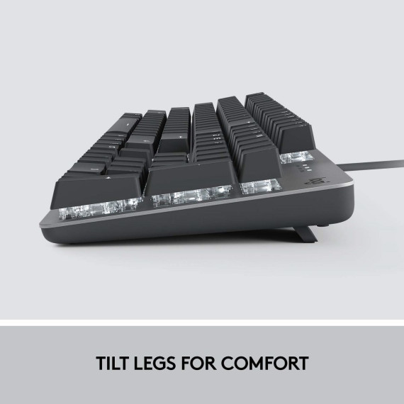 The K845 Mechanical Illuminated is a keyboard that melds precise mechanics with a modern aluminum design. Type comfortably with an adjustable tilt and mechanical key switches of your choice. 5 backlighting options let you customize your experience so you can type for hours - day or night. A durable design features long-life switches, moulded long-lasting characters, and an aluminum top case for modern productivity that lasts. It?s the typing feeling you love - now designed for work.