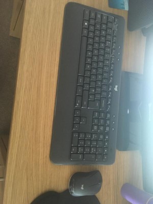 Depend on this wireless keyboard and mouse combo to work perfectly every time you sit at the desk. Spill-resistant, full-size keyboard won't require new batteries for 36 months and your mouse stays powered for 18 months. Plug and play your keyboard and mouse with one tiny USB receiver with Unifying technology delivers a reliable and encrypted wireless connection up to 10 meters away with virtually no delays or dropouts. Convenient and essential hot keys give you direct access to media, calculator and battery check functions. All keys have been optimized for improved accuracy and reduced noise. Palmrest and adjustable tilt legs keep you comfortable for long stretches. Stay productive for hours with a wireless mouse designed to fit comfortably in either your right or left hand. The contoured shape and soft rubber side grips fit comfortably in your palm. Enhanced tracking and precise cursor control keep you in command.