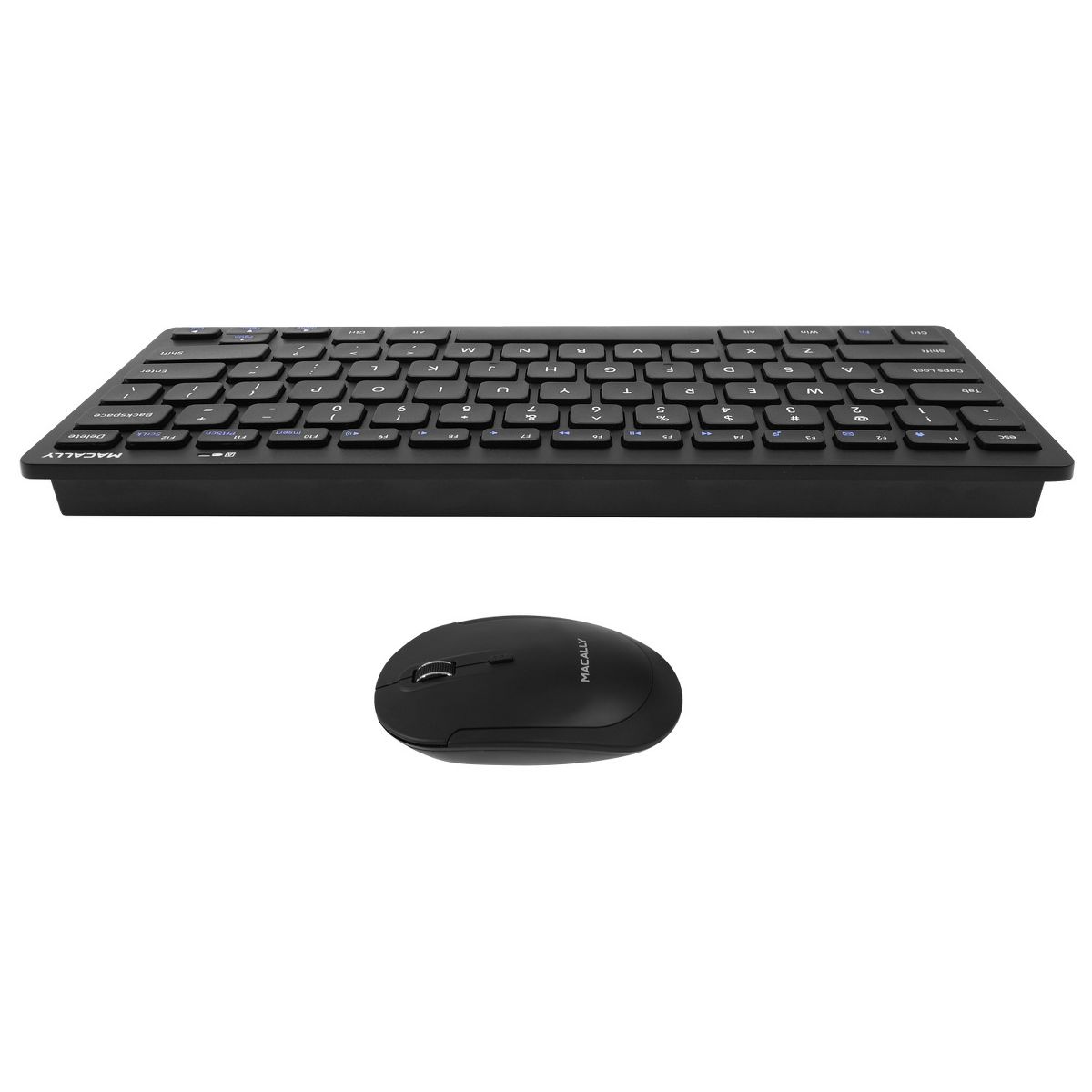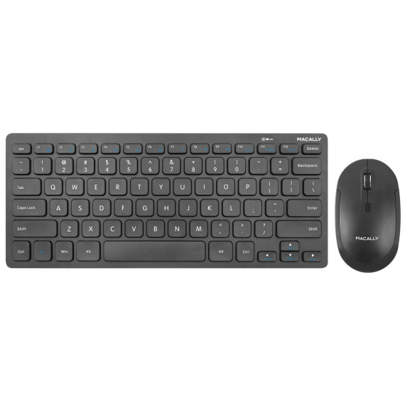 The Macally RFCOMPACTKEYCB has a 2. 4GHz compact wireless RF keyboard RFCOMPACTKEY specially designed for PC, and bundled with a wireless RF optical mouse RFDYNAMOUSEB. The keyboard is ultra slim and compact to save space on the desk and easily store inside a keyboard drawer. The additional shortcut keys further increase efficiency and productivity. RFDYNAMOUSEB is a 3-button scroll-wheel mouse with 800/1200/1600 dpi optical sensor for precise and smooth control. The Macally RFCOMPACTKEY and RFDYNAMOUSEB are very easy to use. Simply plug the RF receiver dongle into the USB port of your computer and you are ready to go! Also, no software is required! Thin, compact, and versatile, the Macally RFCOMPACTKEYCB is the perfect companion for your PC!