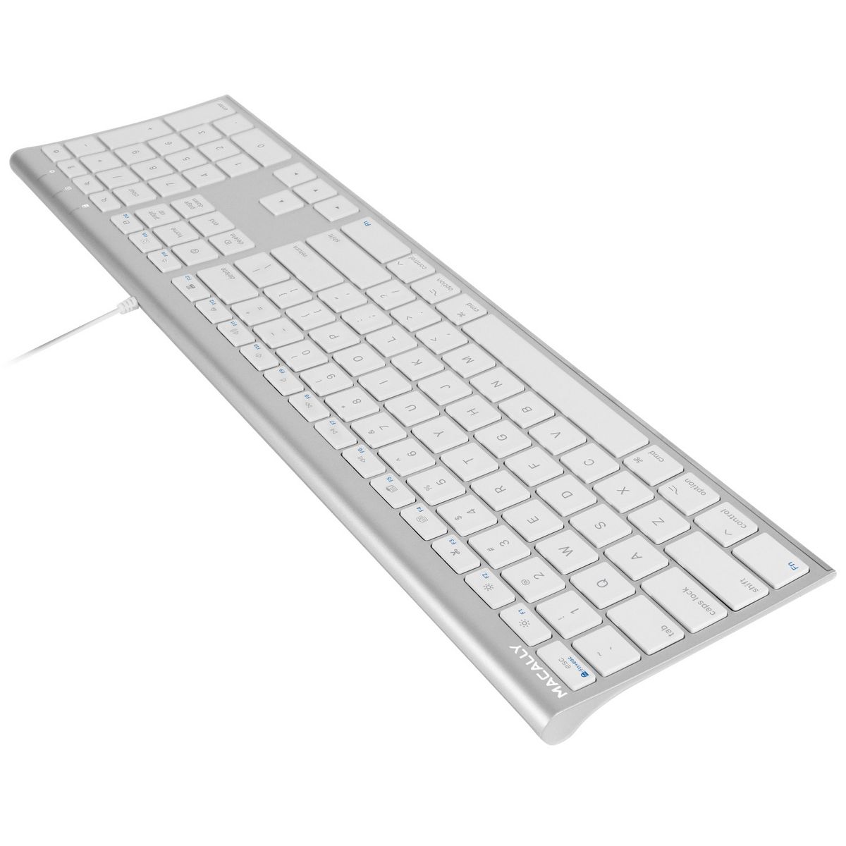 The Macally ACEKEY is an extended ultra slim USB keyboard with a standard layout that 110 full size, yet thin, keys for a Comfortable and efficient typing experience. The 20 convenient shortcut keys and numeric keyboard further increase efficiency and productivity. It works with both Macintosh and Windows PC desktops / laptops. with a USB wired connection, you won't have to deal with making sure your keyboard has enough power through the day nor will you have to deal with a weak connection between your keyboard and the computer, therefore making it the perfect alternative for a wireless keyboard. Simply plug the cable into the USB port of your computer and you are ready to go! Unlike wireless keyboards, this keyboard doesn't require charging nor syncing. No software is required! The long 140 cm cable allows you to easily connect your keyboard to your computer, even if its underneath your desk.
