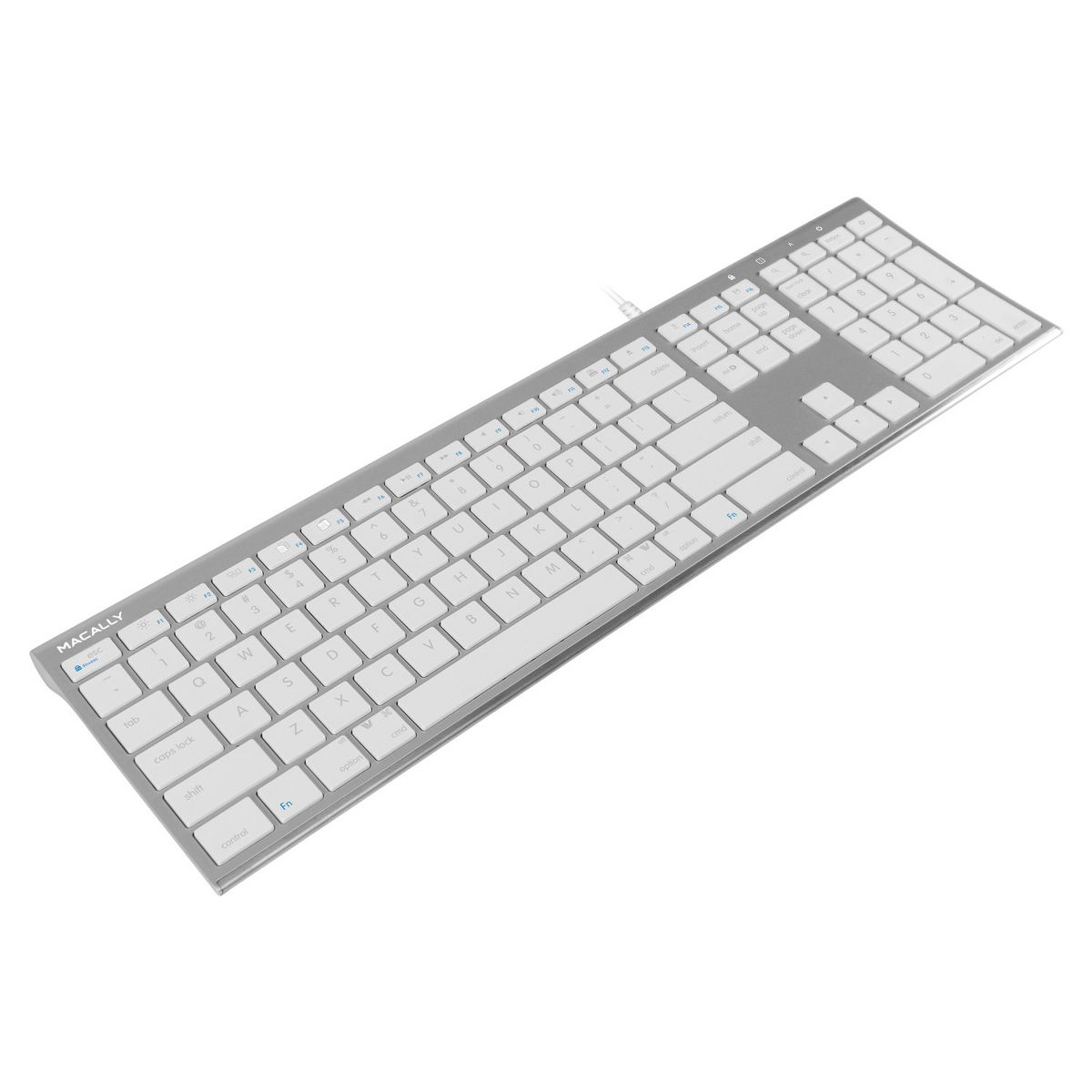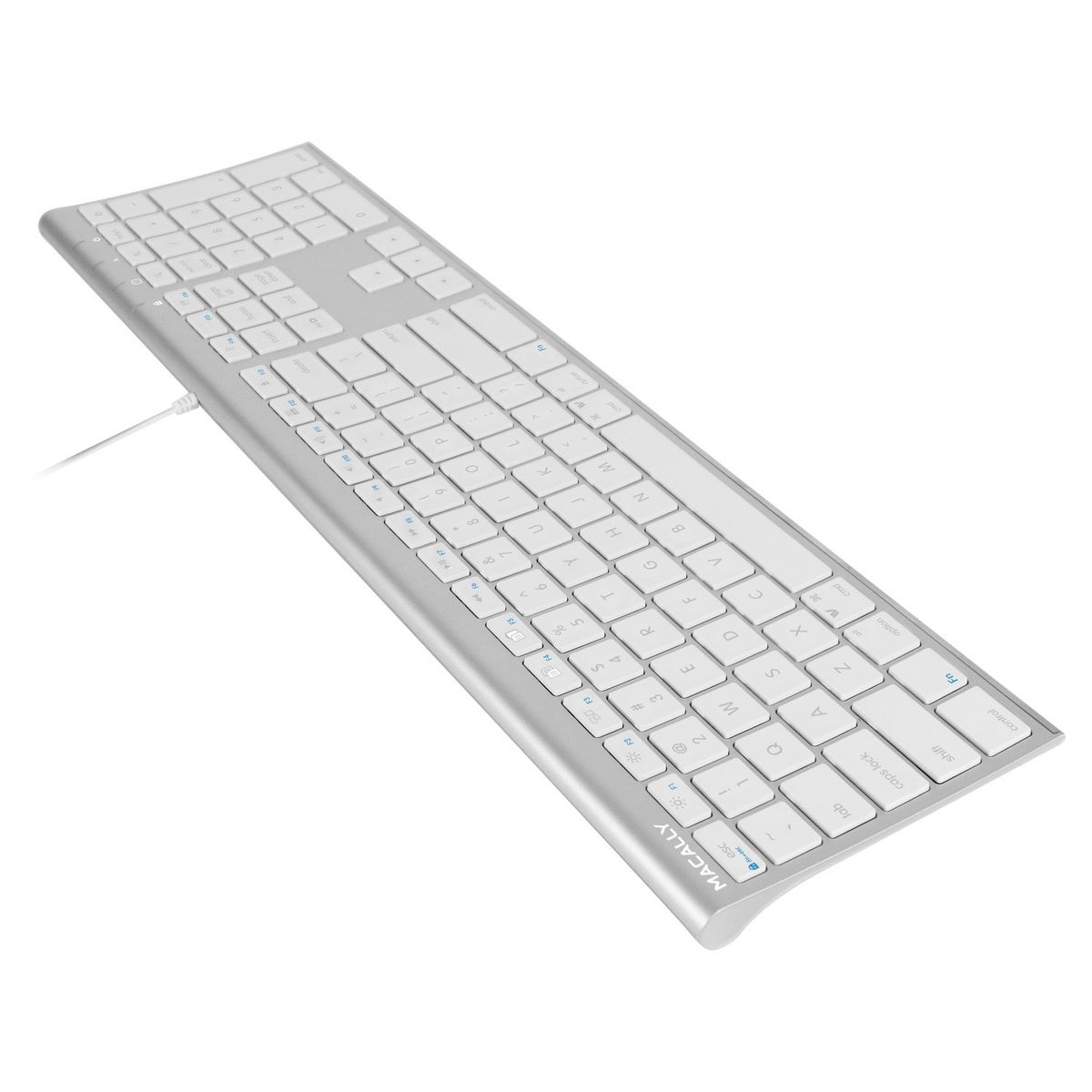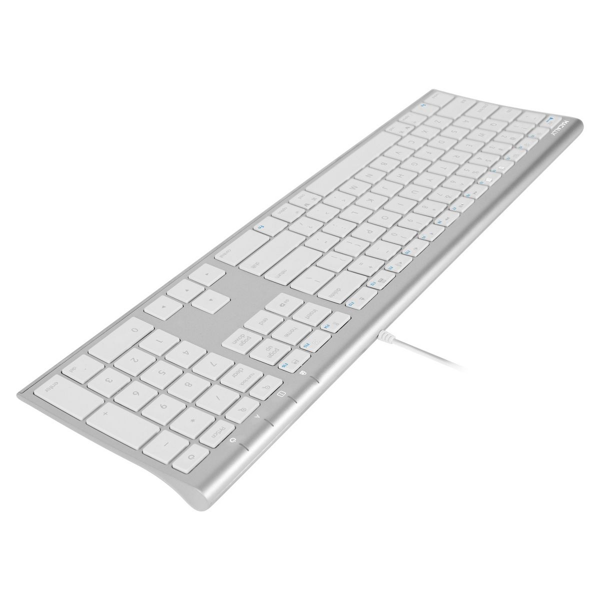 The Macally UCACEKEYA is an extended ultra slim USB keyboard with a standard layout that 110 full size, yet thin, keys for a Comfortable and efficient typing experience. The 20 convenient shortcut keys and numeric keyboard further increase efficiency and productivity. It works with both Macintosh and Windows PC desktops / laptops. with a USB wired connection, you won't have to deal with making sure your keyboard has enough power through the day nor will you have to deal with a weak connection between your keyboard and the computer, therefore making it the perfect alternative for a wireless keyboard. Simply plug the cable into the USB port of your computer and you are ready to go! Unlike wireless keyboards, this keyboard doesn't require charging nor syncing. No software is required! The long 140cm cable allows you to easily connect your keyboard to your computer, even if its underneath your desk.