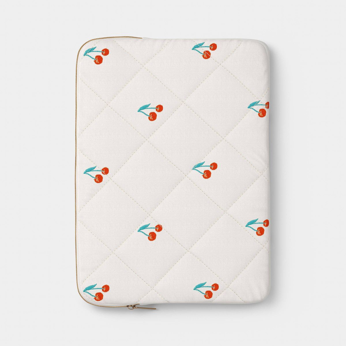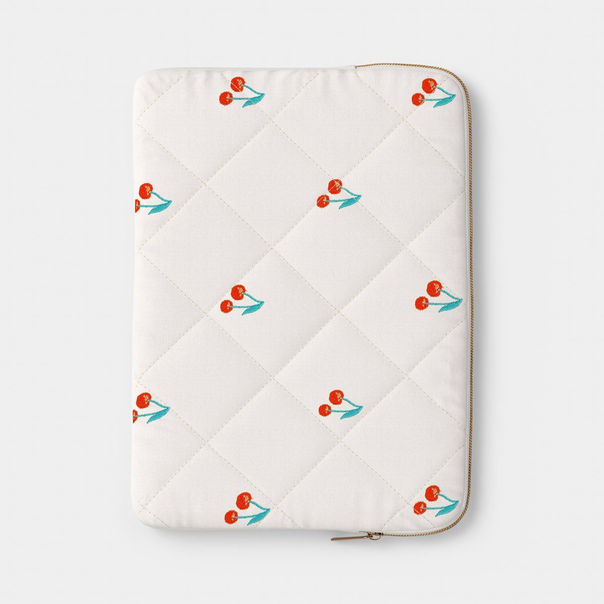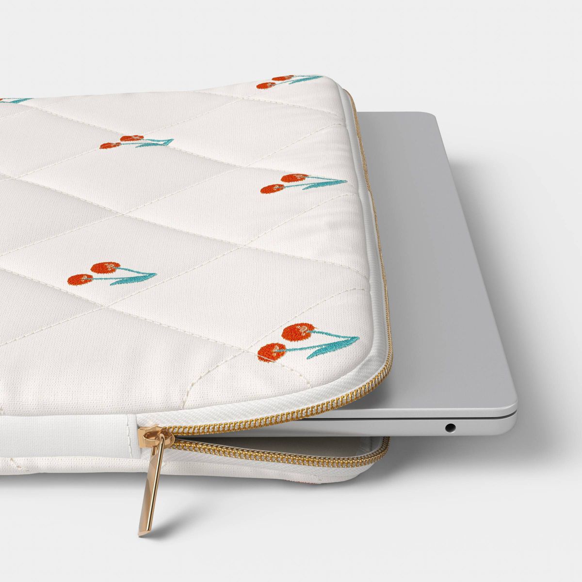 15" Laptop Sleeve - heyday™ White Quilted with Embroidered Cherries