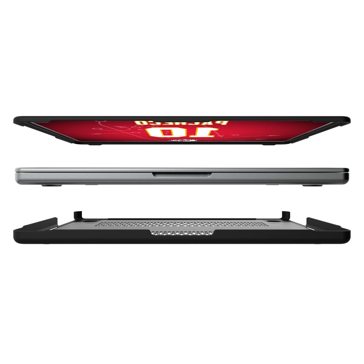 Gear up your MacBook Case with a protective cover tailored for the ultimate fan! Crafted using a durable panel and a pliable yet resilient frame, this MacBook case stands as a barrier against daily jolts and impacts. With an officially licensed design emblazoned on its top surface, it is a declaration of your unwavering fan loyalty. Whether you are hustling through your day or settling in for some hardcore fandom, this case radiates your undying fan love, while keeping your MacBook safe! Designed and decorated by Keyscaper in Tualatin, Oregon, USA.