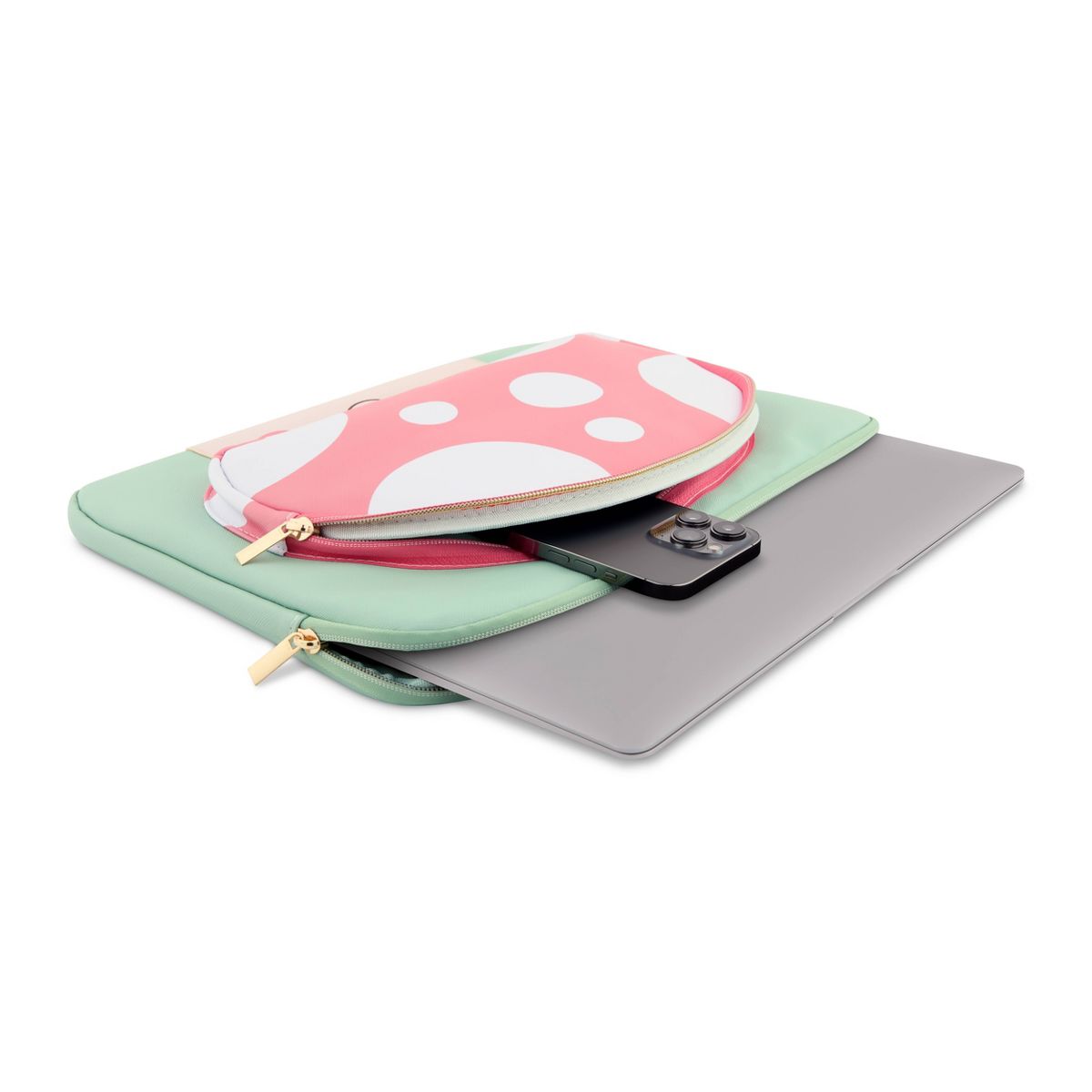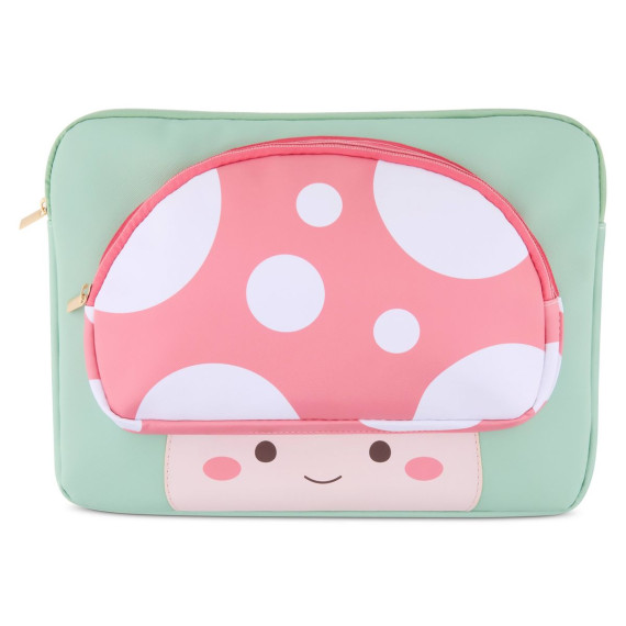 Your new favorite tech sleeve is here. Protect your laptop or tablet with this whimsical Mimicoco mushroom character laptop sleeve that fits up to a 14" device. Designed with your busy lifestyle in mind, this case will protect your device at home or on the go. It has a front pocket for extra storage and a faux fur lining that is protective and durable.