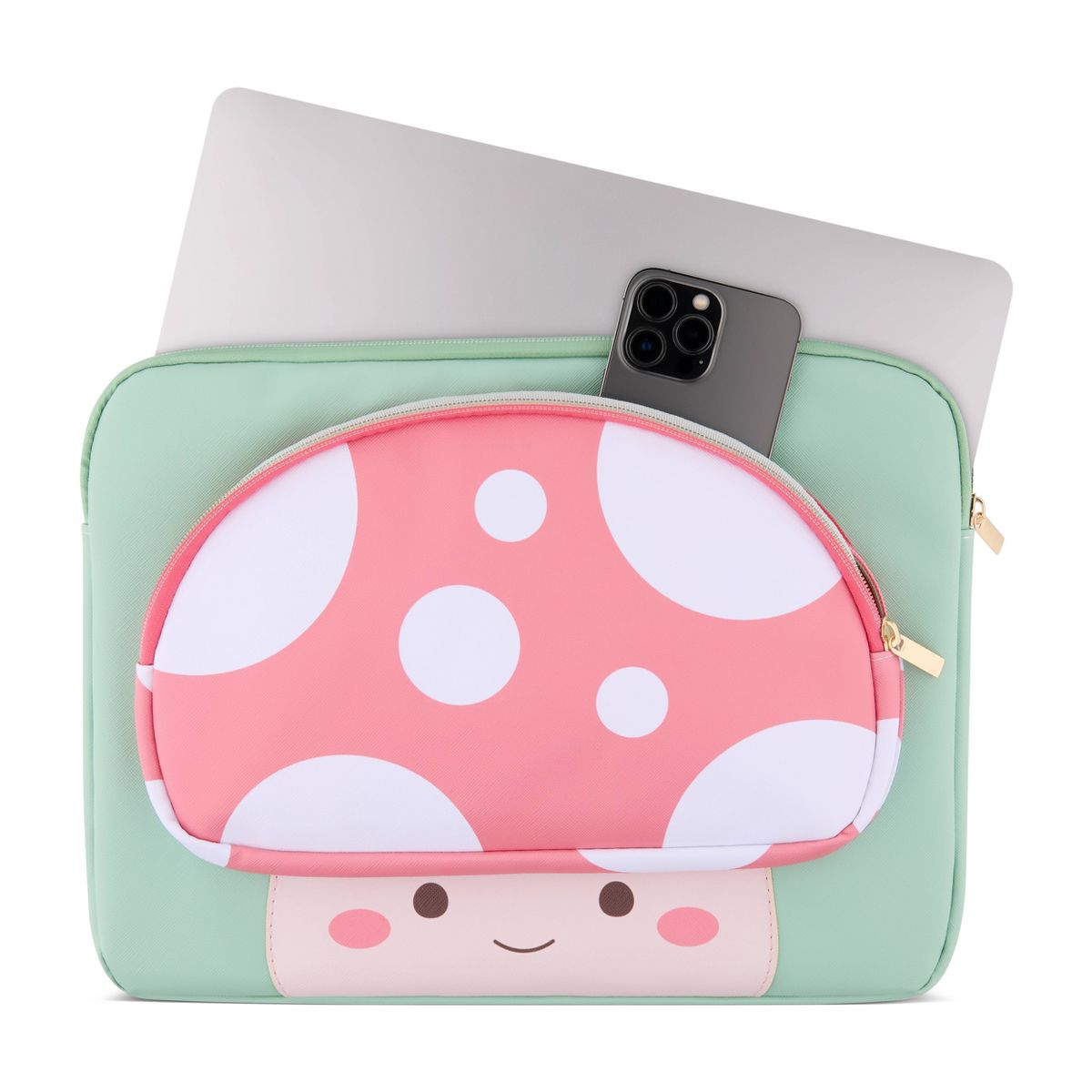 Mimicoco Mushroom Character Pocket Laptop Sleeve: Fits Most Laptops Up to 14"