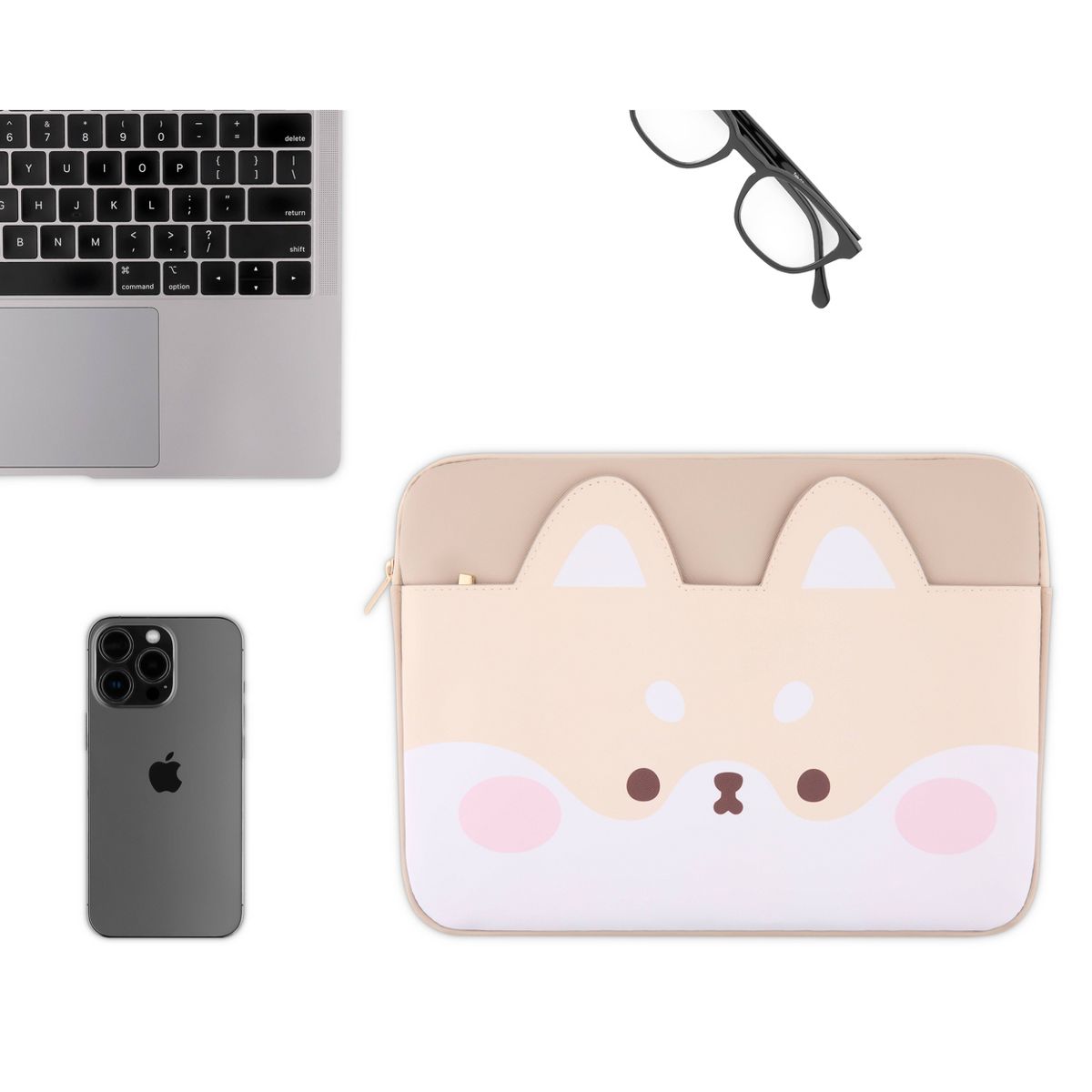 Mimicoco Shiba Character Pocket Laptop Sleeve: Fits Most Devices Up to 14"
