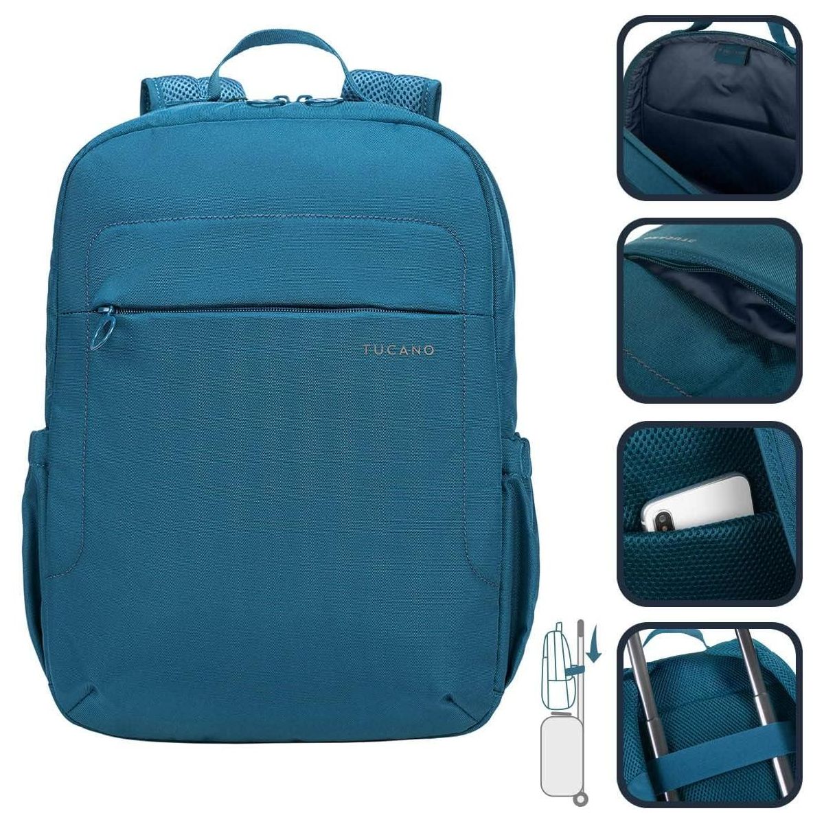 Backpack for Laptops made with high-tech material, featuring a flat exterior pocket on the front. The roomy, padded interior features a protective pocket for either laptop or tablet. In addition to the external security pocket on the back, there is also a trolley strap. Ergonomic back and adjustable, padded shoulder Straps.Tucano backpacks are sporty, fashion, for travel or leisure. Made of technical materials, lightweight and durable, they are available in different colors. The comfortable interior pockets allow for perfect organization and the laptop compartment has anti-shock padding. Almost all models are equipped with a trolley strap, ergonomic backrest and padded and adjustable shoulder straps.