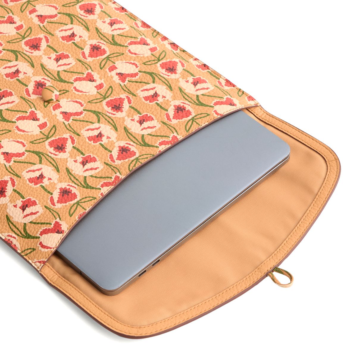 The compact size makes it ideal for slipping into your bag or briefcase, while the minimalist aesthetic adds a touch of sophistication to your everyday carry. Whether you're heading to a meeting or catching a flight, our tech sleeve ensures that your device is protected in style. Details: Button closure.