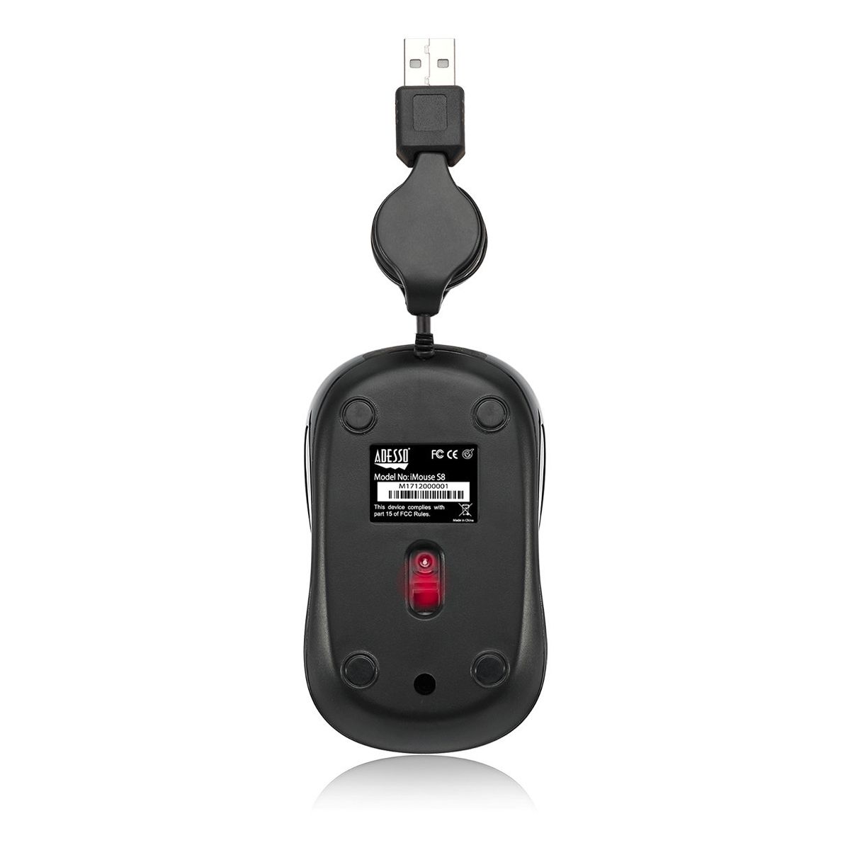 The Adesso iMouse S8 - USB Illuminated Retractable Mini Mouse is the perfect travel companion while on the road, and the perfect desktop mouse when you return. Our innovative design features a built-in scroll wheel to enable you to scroll up or down with pinpoint accuracy and control. A Retractable USB Cable allows you to expand and collapse the cable for improved mobility. Its built-in DPI of 800/1200/1600 and optical sensor lets you navigate your cursor with better speed, accuracy, and reliability on almost all surfaces.