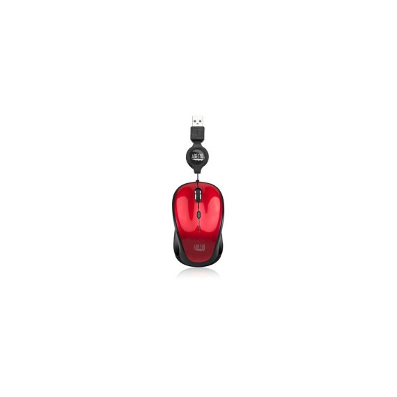 Adesso iMouse S8R - USB Illuminated Retractable Mini Mouse - Optical - Cable - Red - USB 2.0 - 1600 dpi - Scroll Wheel - 3 Button(s) - Symmetrical