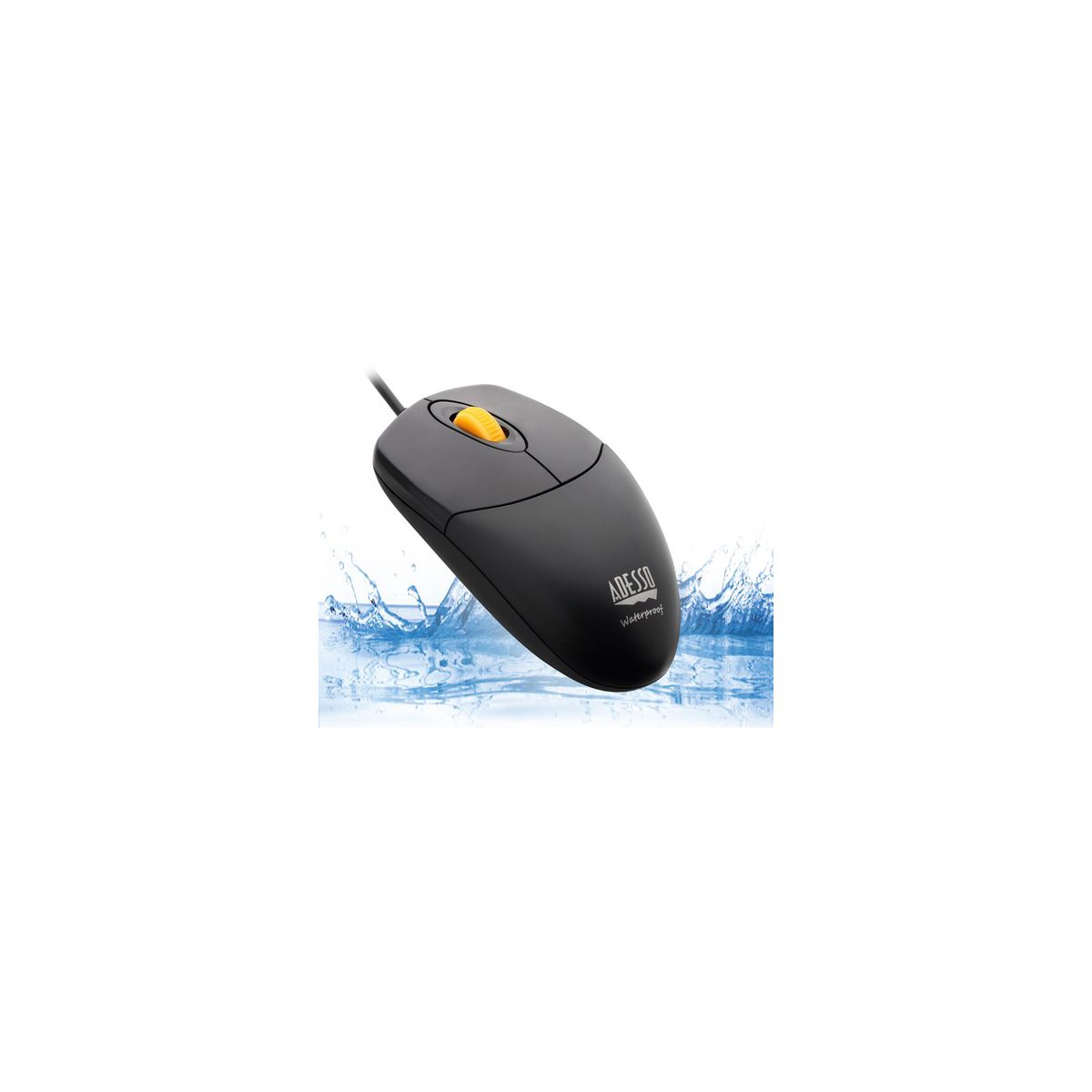 Adesso iMouse W3 - Waterproof Mouse with Magnetic Scroll Wheel - Optical - Cable - Black, Yellow - USB - 1000 dpi - Scroll Wheel - 4 Button(s)