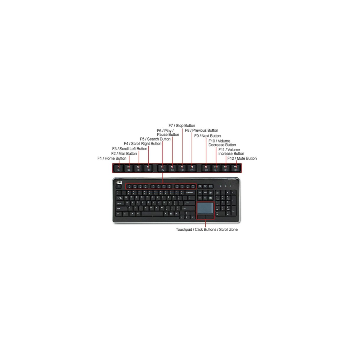 Adesso Wireless SlimTouch Desktop Touchpad Keyboard - Computer Keyboard - WKB4400UB