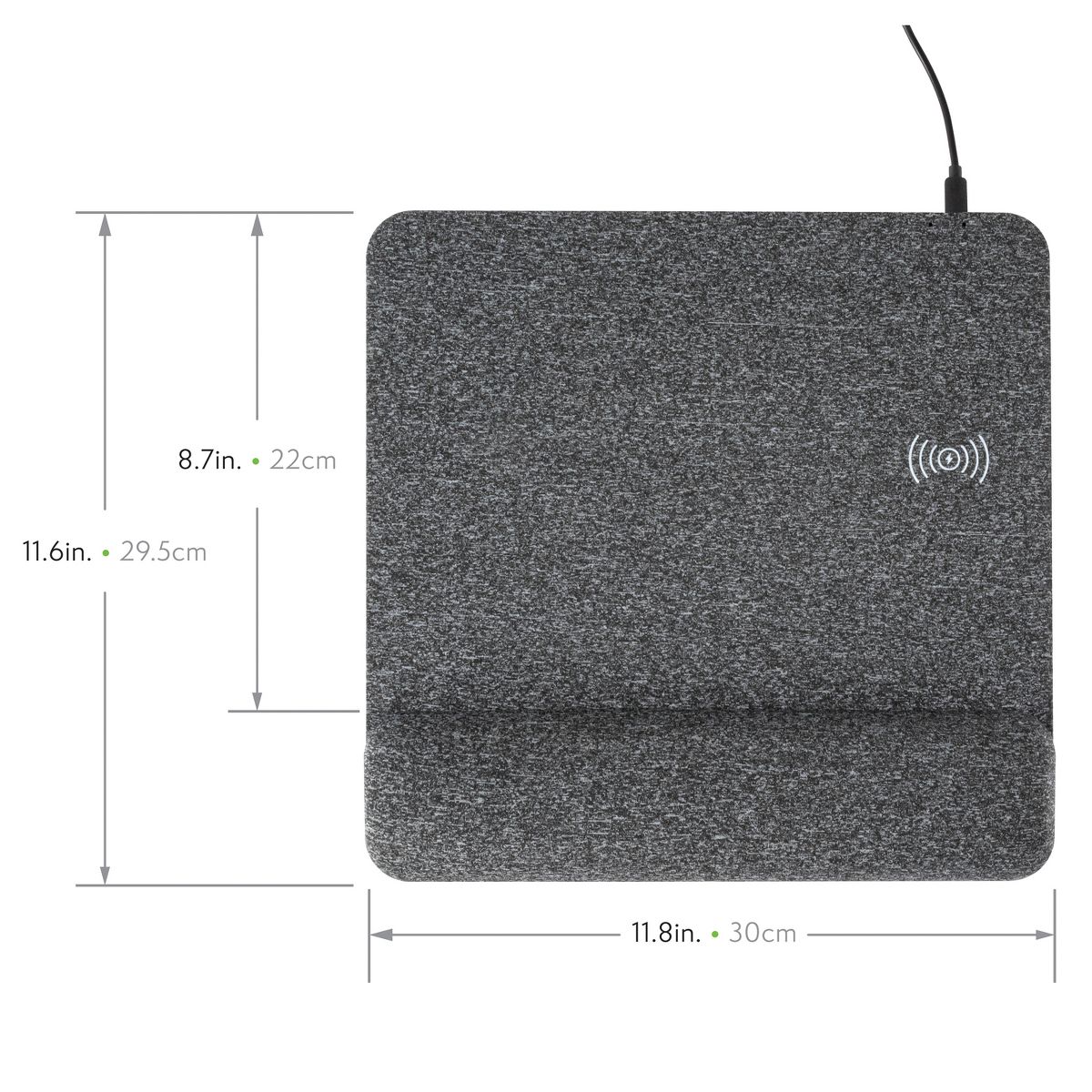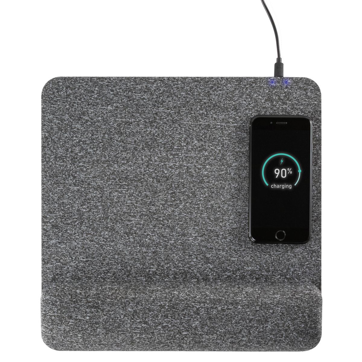 The Allsop PowerTrack Plush Wireless Charging Mousepad provides an easy and convenient way to charge your wireless devices with the added benefit of an accurate and comfortable mousing surface! The oversized 11.6 in. x 11.8 in. mousepad is covered in a responsive fabric and incorporates a multi-layer foam wrist rest to relieve wrist strain and provide ergonomic comfort. It allows you to charge your phone or other Qi-compatible device wirelessly at your desk. Simply place the device on the wireless charging area to begin charging._