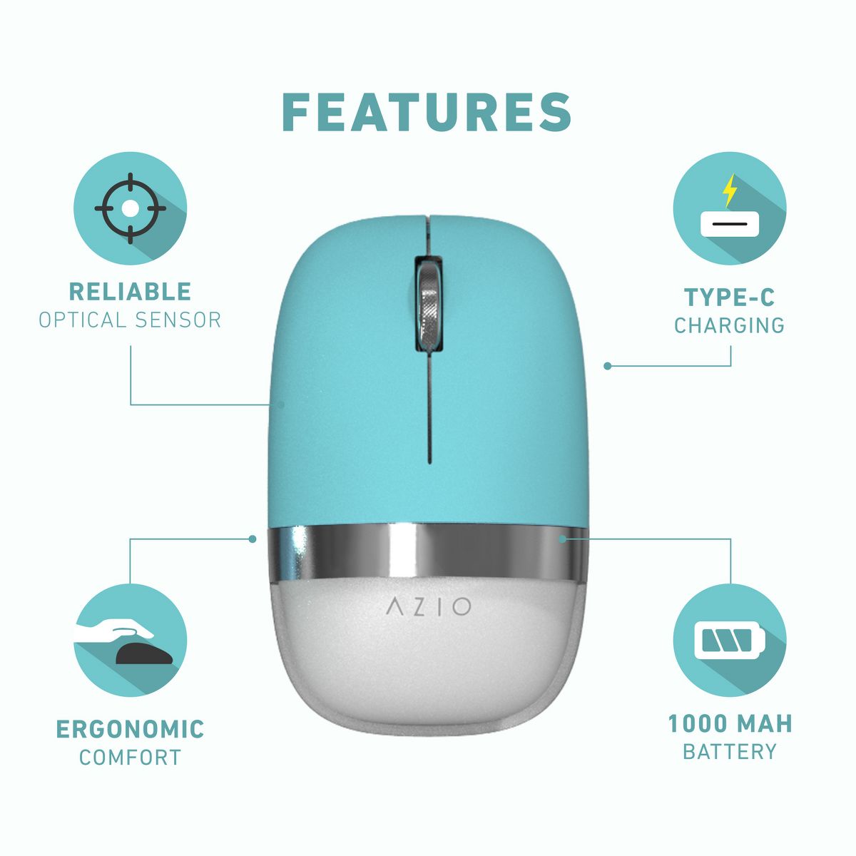 The IZO Mouse from Azio adds a colorful touch to your workspace and fits comfortably in your grip with an ergonomic round form. The combination metallic-matte finish and frost base creates a glamorous juxtaposition of colors for an instant statement look. The alluring metallic scroll wheel and ring contrasts the soft touch of the translucent frost body. The smooth round shape provides peak ergonomic comfortability in the palm of your hand. The highly accurate PixArt PAW 3212 optical sensor comes with adjustable DPI settings at 1,000, 1,600, or 2,400 for reliable tracking._