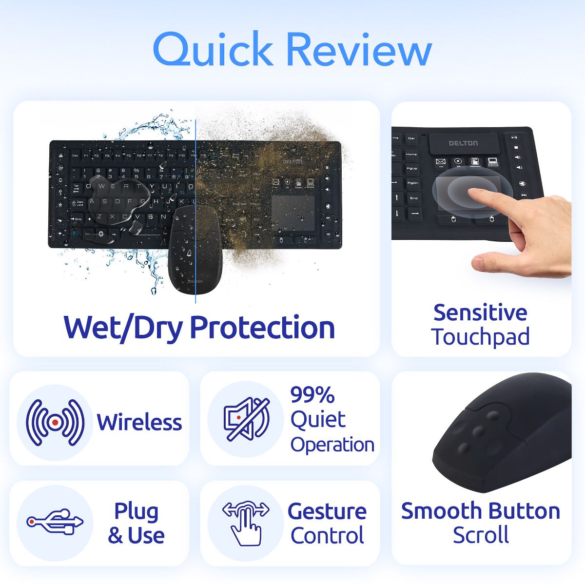 Delton M90/M44 Medical Grade Airtight Waterproof Wireless Computer Keyboard & Mouse, Black